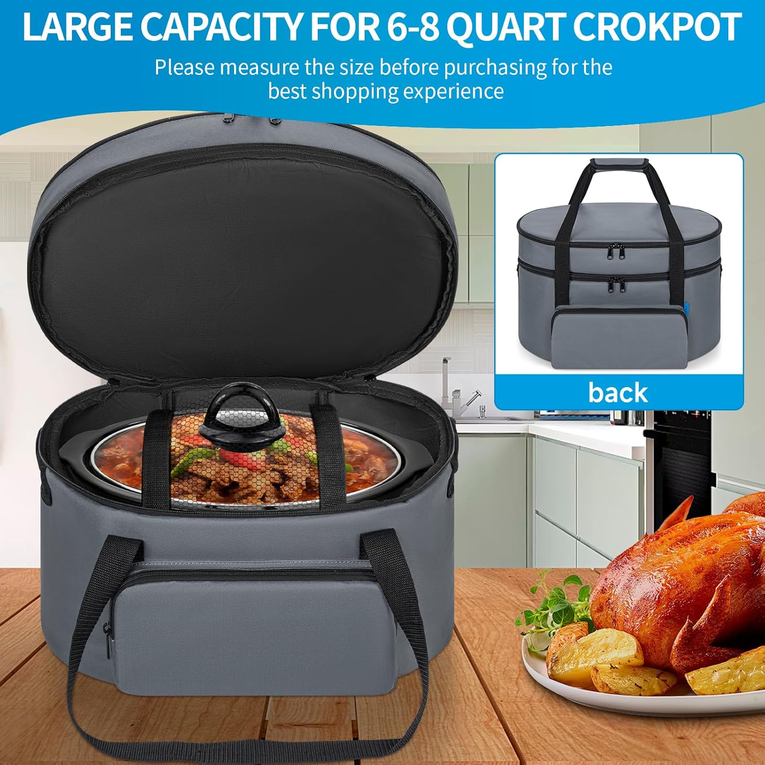 - 【Functionality】: This bag is insulated to retain heat and keep food warm when transporting from one place to another. The zipper front design of the bag makes it easy to carry and convenient to use, allowing you to easily put in and take out the slow cooker