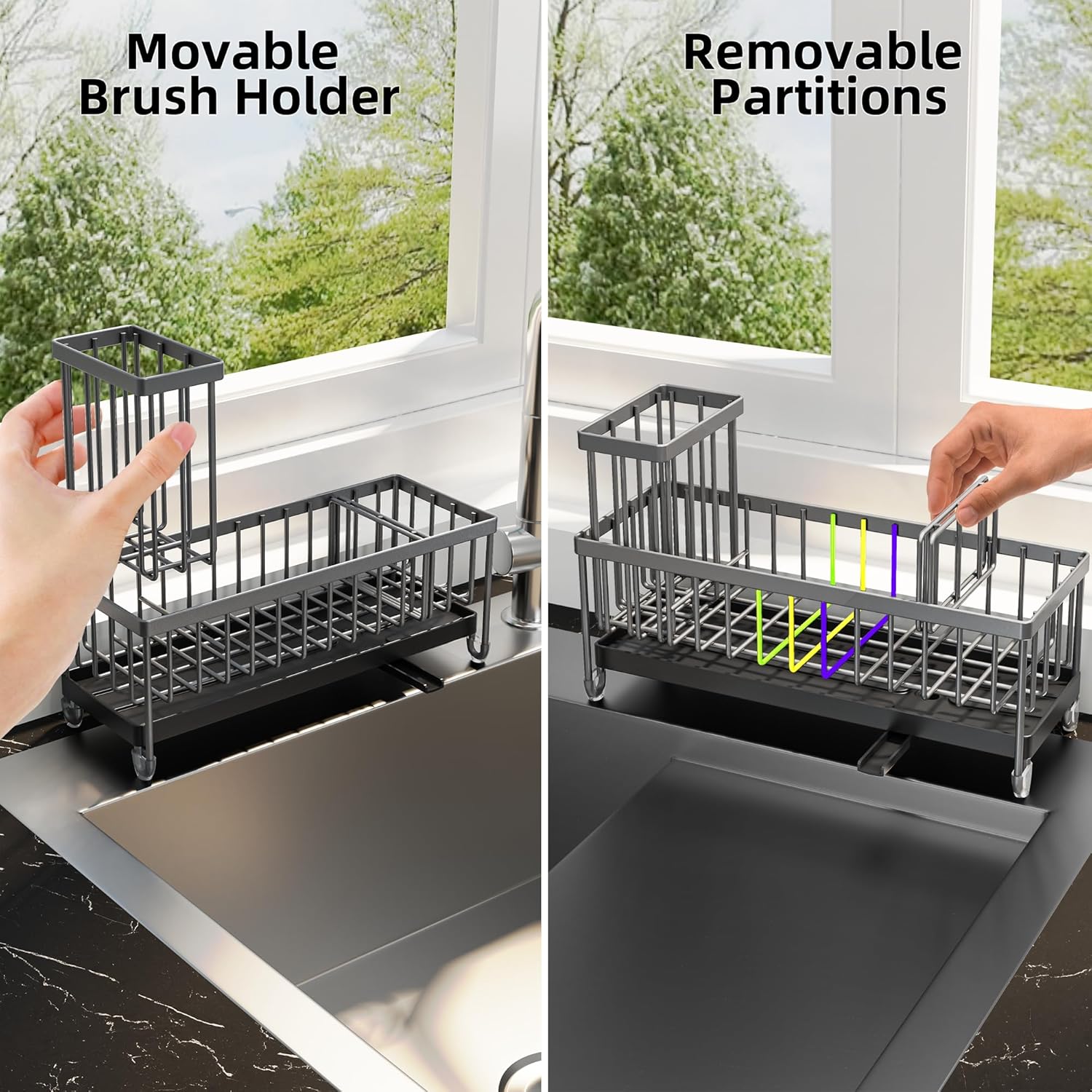 - 【BRUSH STORAGE RACK】The higher brush storage rack allows your brushes to be better stored without falling. The kitchen sink caddy can be used after receiving it, no installation is required, and it is widely used on sink countertops or bathrooms. It is a satisfying gift.