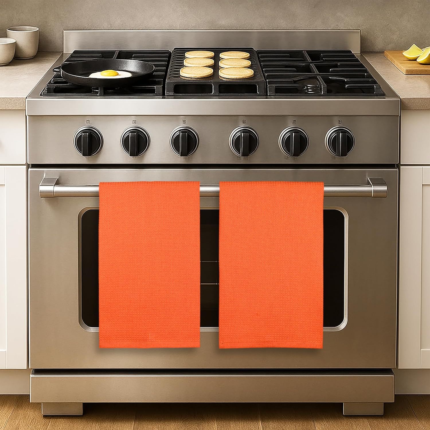 PurpleEssences Waffle Weave Kitchen Solid Dish Cloths 100% Cotton, Ultra Soft Absorbent Quick Drying Dish Towels (Orange, 15 x 25-6 Pack)