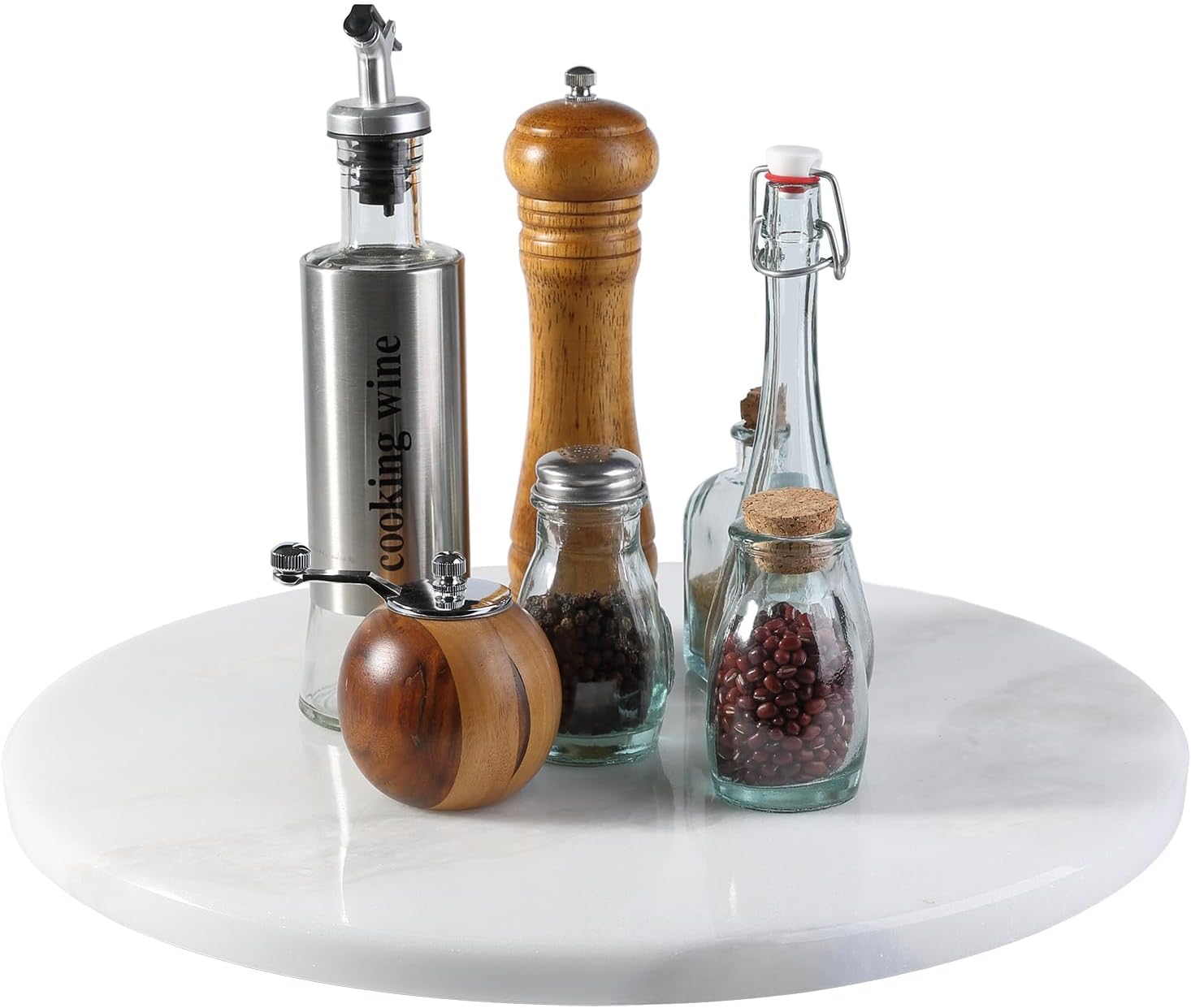 - STABILITY & DURABILITY - Made of genuine natural marble, this rotating spice rack is solid and heavy-duty enough to provide stability and balance, suitable for use in wet and dry areas, making the rotating tray easy to clean without worrying about moisture and mold