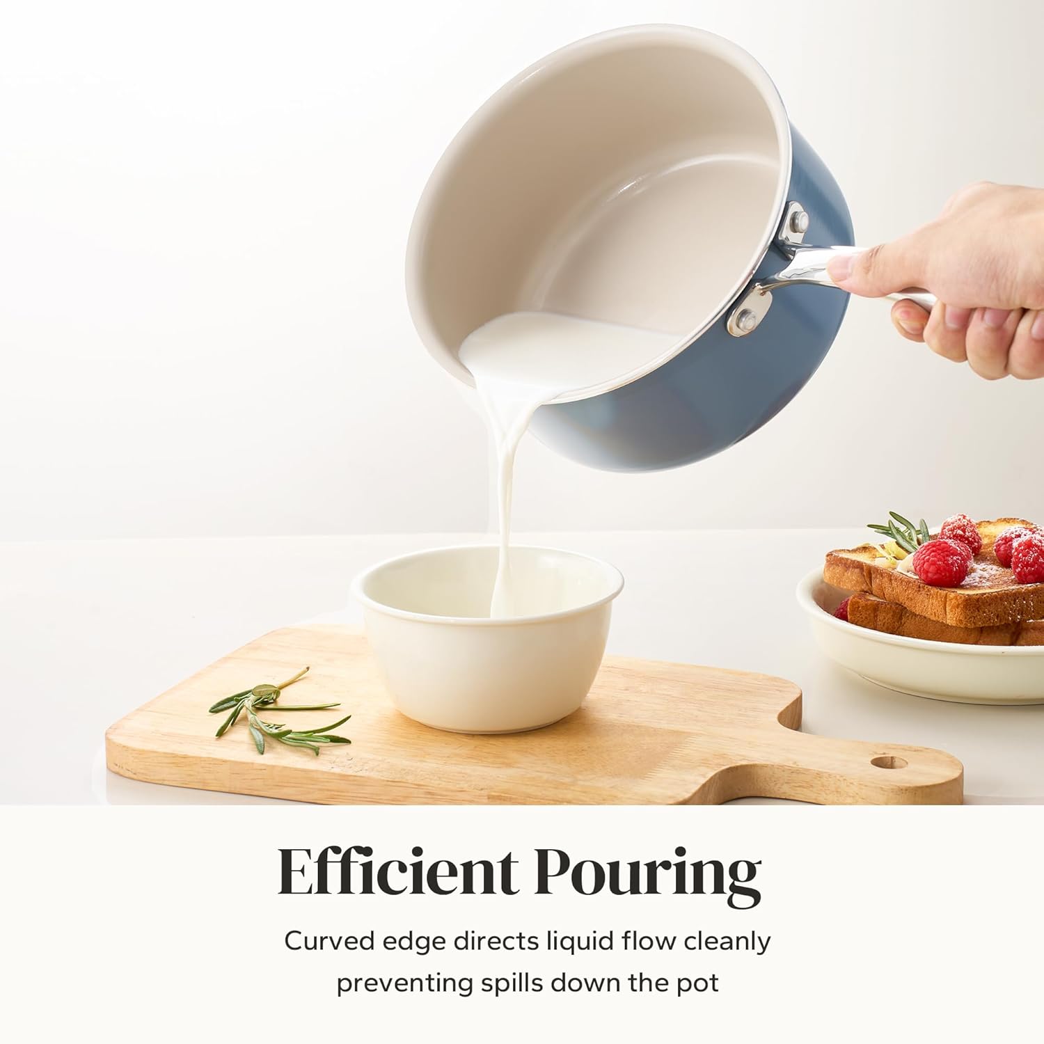 - 2.5QT SAUCE PAN:This 7"cooking pot perfect for 1-2 servings of sauces, soups, pasta, or oatmeal. Space-saving design fits all stovetops and stores easily in small kitchens