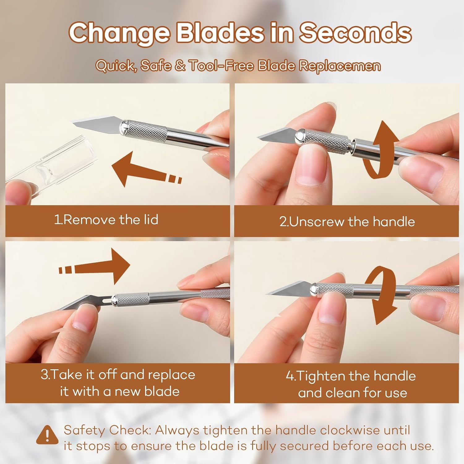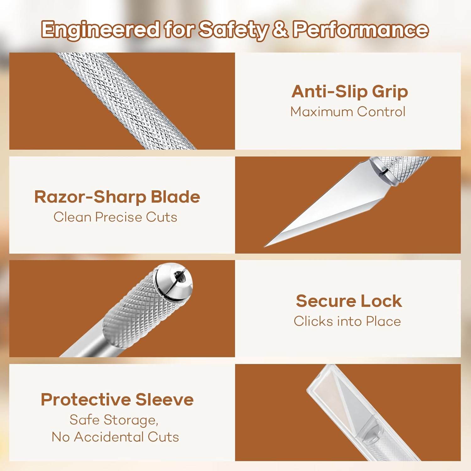 - ✅【Ergonomic Pen-Style Handle with Cap】– Designed for comfort and precision. The balanced stainless steel handle makes intricate scoring easy, while the protective cap keeps storage safe and worry-free