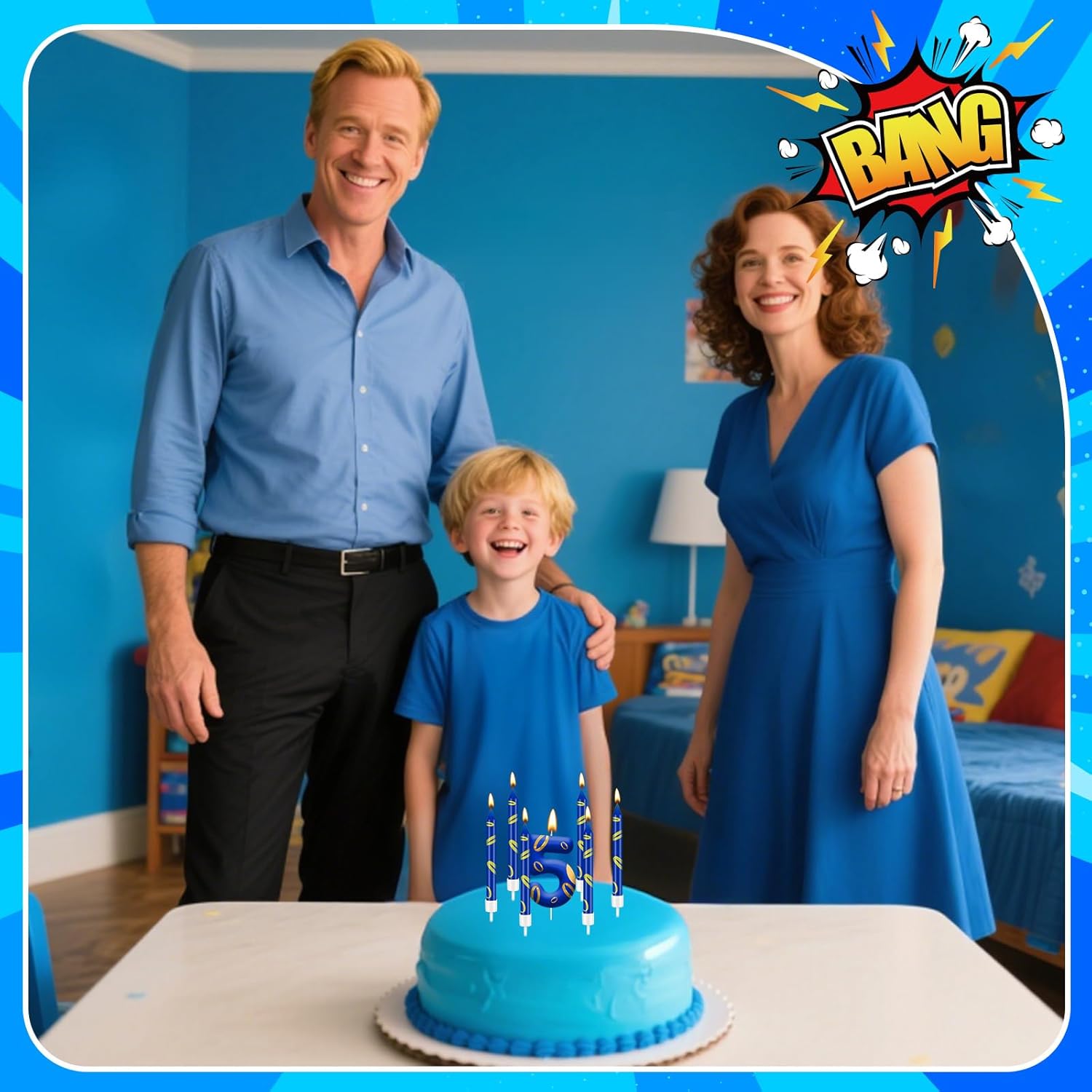 13PCS Birthday Cake Candles Set - Blue and Golden Ring Number Candles with Vibrant Designs for Boys & Girls, Theme Birthday Party Decorations, Cake Toppers for Theme Parties(Number 5)