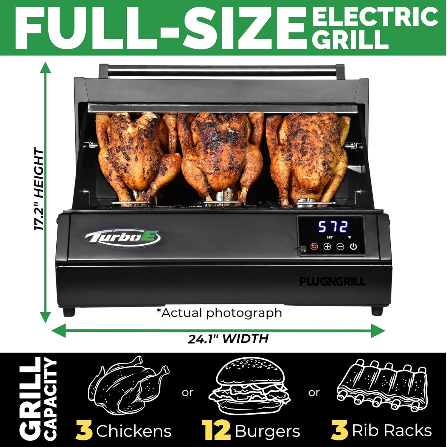 - PLUGNGRILL CONVENIENCE: Easy plug-in operation. No gas or charcoal, just 120V of electric efficiency with infrared technology ensuring maximum heat distribution. Plug In & Get Grilling!