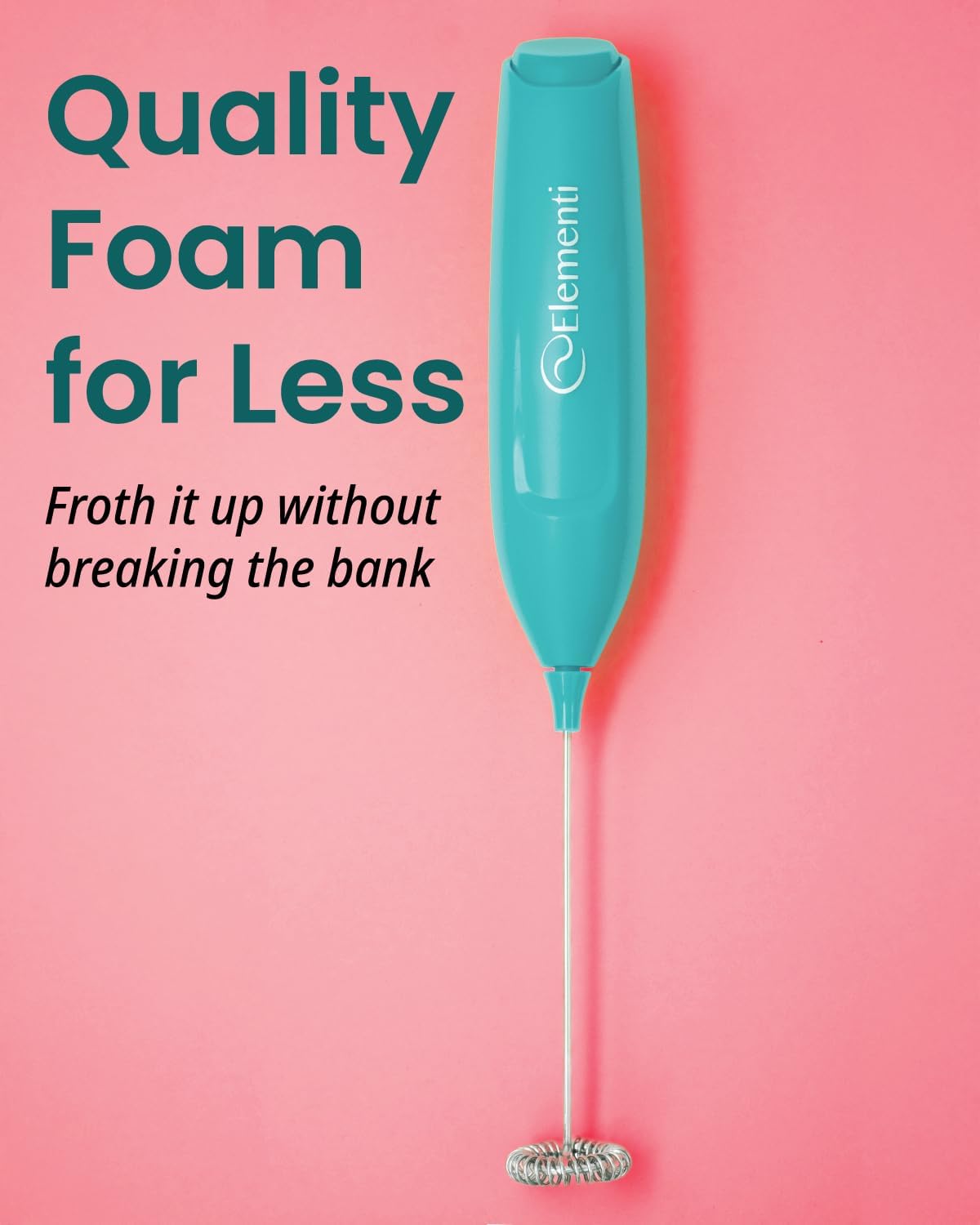 Elementi Powerful Frother Wand – Lightweight Milk Frother & Drink Mixer Handheld, Matcha Whisk for Dreamy Lattes, Powerful Coffee Mixer Wand & Blender Stirrer - Make Creamy Cappuccinos at Home (Teal)