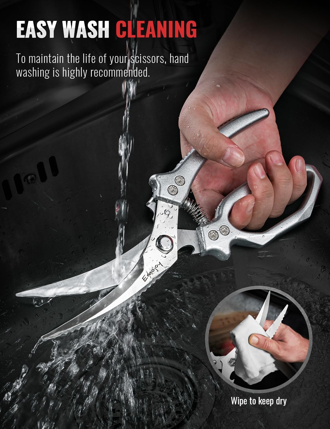 Emojoy 3-Piece Kitchen Scissors Set with Poultry Shears, Japanese Stainless Steel Kitchen Shear, All Purpose Scissor for Food, Chicken Bones, Dishwasher Safe