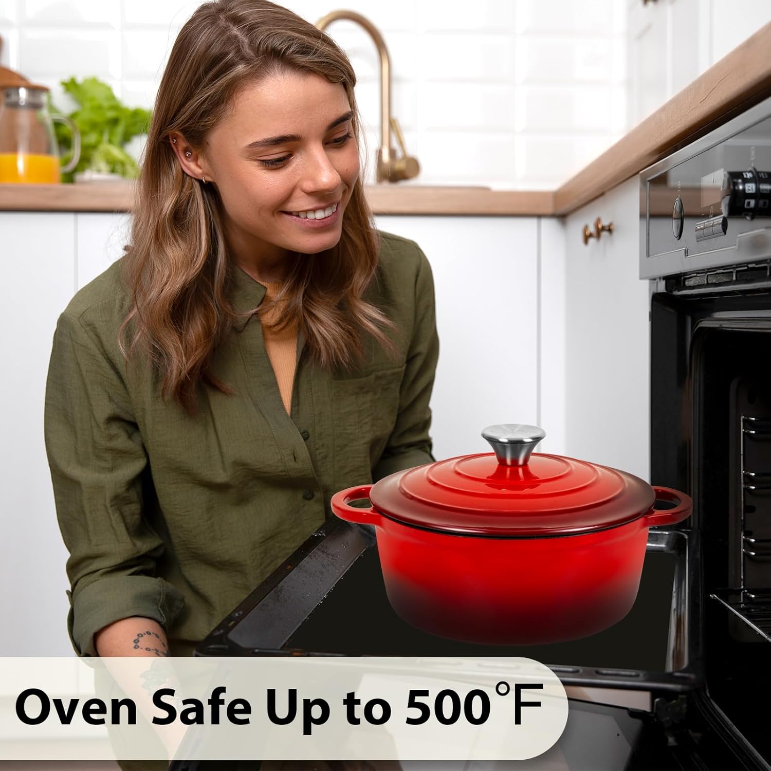 Romswi Enameled Cast Iron Dutch Oven Set - 3qt & 5.5qt Dual Combo - 7-Layer Professional Grade Dutch oven pot with lid - Oven Safe for Braising, Stews, Roasting, Bread Baking - Red Bread Dutch Oven