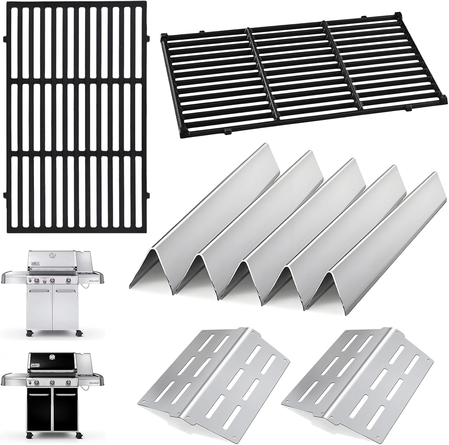 - For Weber genesis 310 grill - Fit for weber genesis grill replacement compatible with weber original part number genesis 300 flavorizer bars 7620, 7621, 62783, 62784, 307621, 93025; for weber 330 genesis parts, for weber heat deflector 62756, 7622, 65505; for weber grill grates 7524, 7528, 7566, 65937, 82184, 83030, 7524 & 81631 grill part.