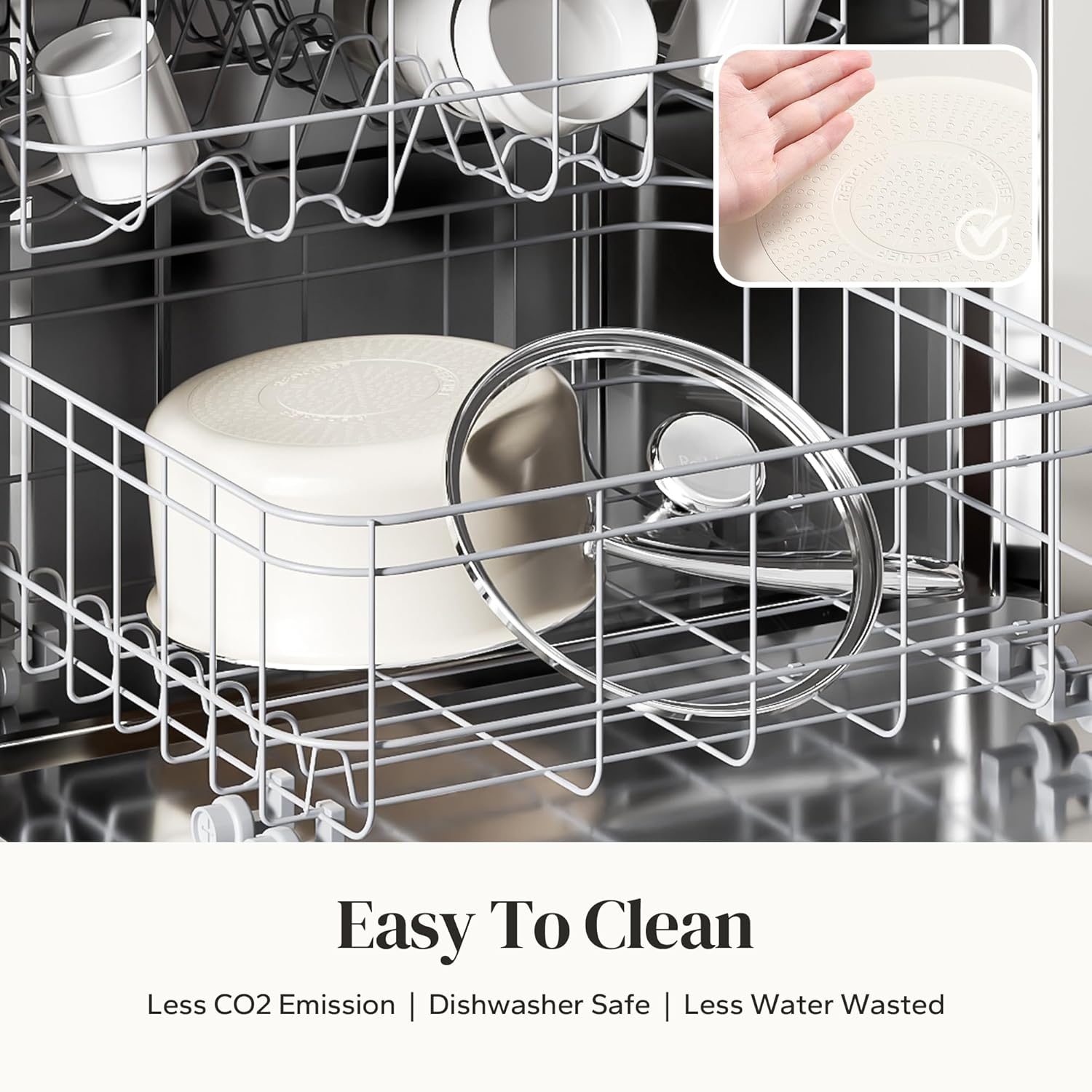 - CERAMIC NONSTICK COATING (PFAS/PFOA-FREE):Healthy cooking with minimal oil. Scratch-resistant ceramic surface ensures easy cleanup and long-lasting performance. Enjoy worry-free cooking with ceramic pot's toxin-free coating