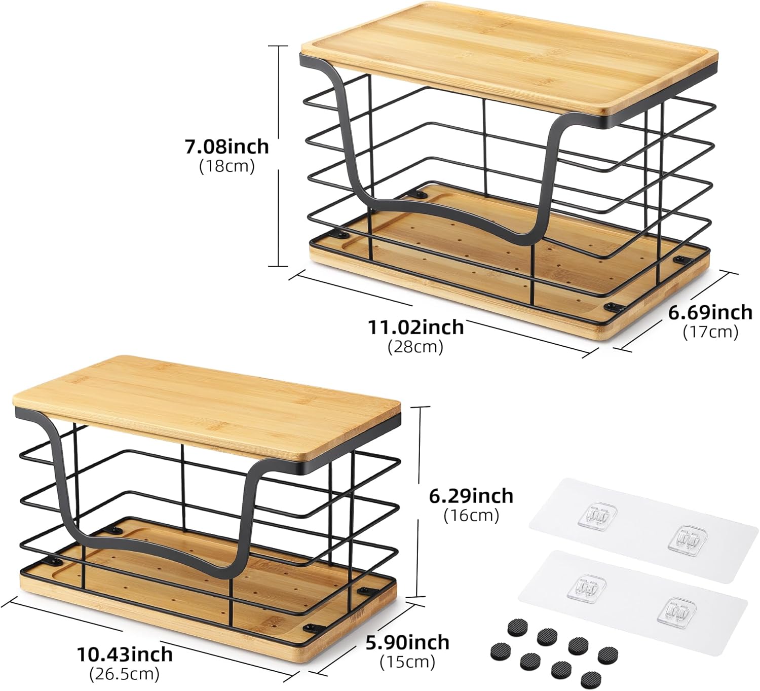 - Space-Saving Stackable Design. The bamboo tops feature a recessed groove, allowing safe stacking for vertical space optimization. Whether placed on the countertop or mounted under the sink, these holders are compact yet highly functional.