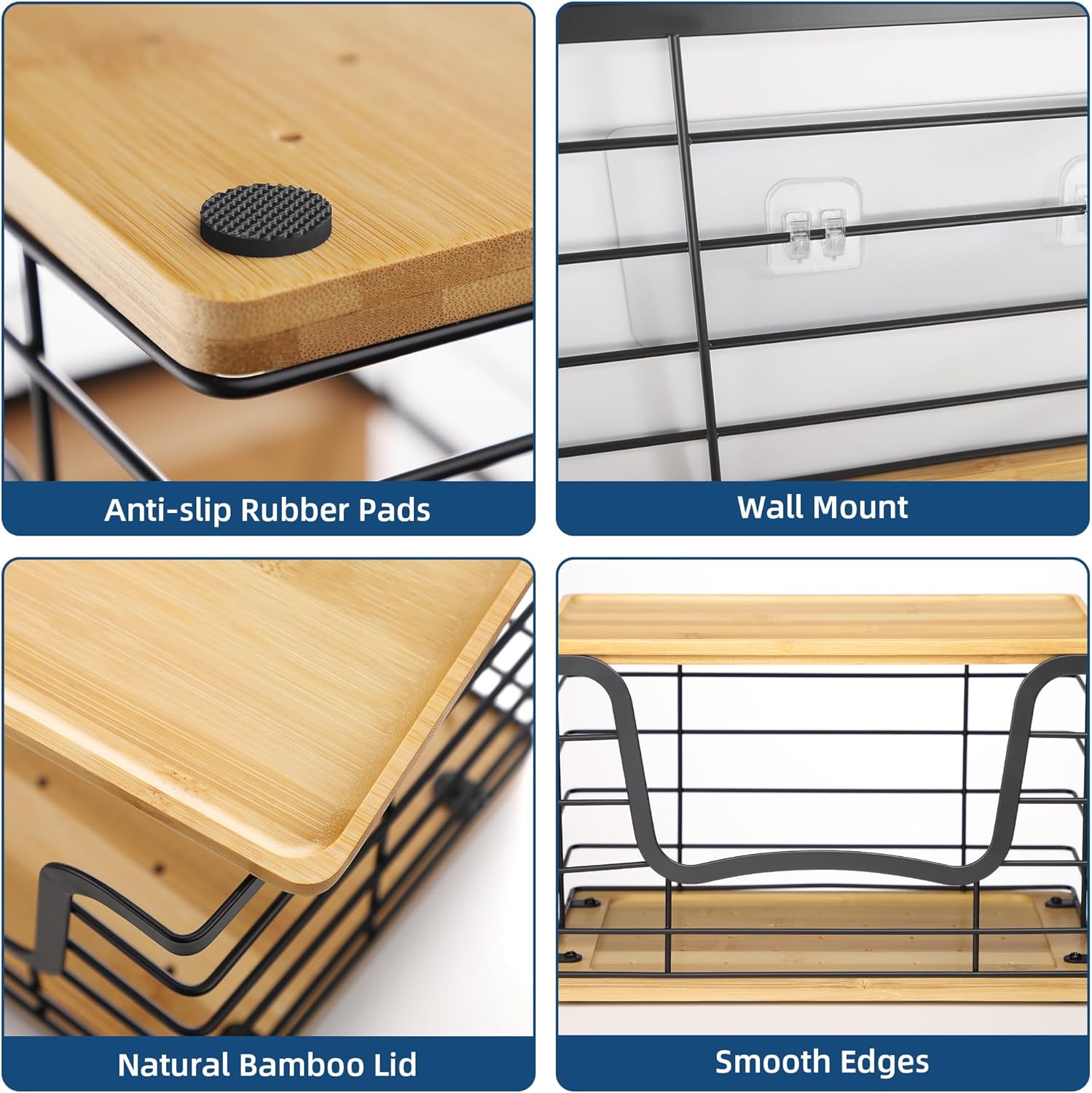 - Durable and Stylish Materials. Built with rust-resistant stainless steel and waterproof natural bamboo, this set combines strength with modern aesthetics. Perfect for blending into kitchens, laundry rooms, and bathrooms.