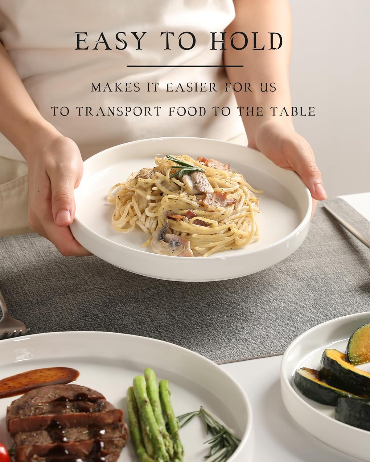 - Exactly What You Need: This ceramic 12 piece dinnerware set includes 6"soup bowls x 4, 8" salad plates x 4, 10" dinner plates x 4. The sizes of the plates are normal for salad and dinner, the bowls are quite big for cereal and soup, itβs both practical for daily use and a chic choice when hosting guests
