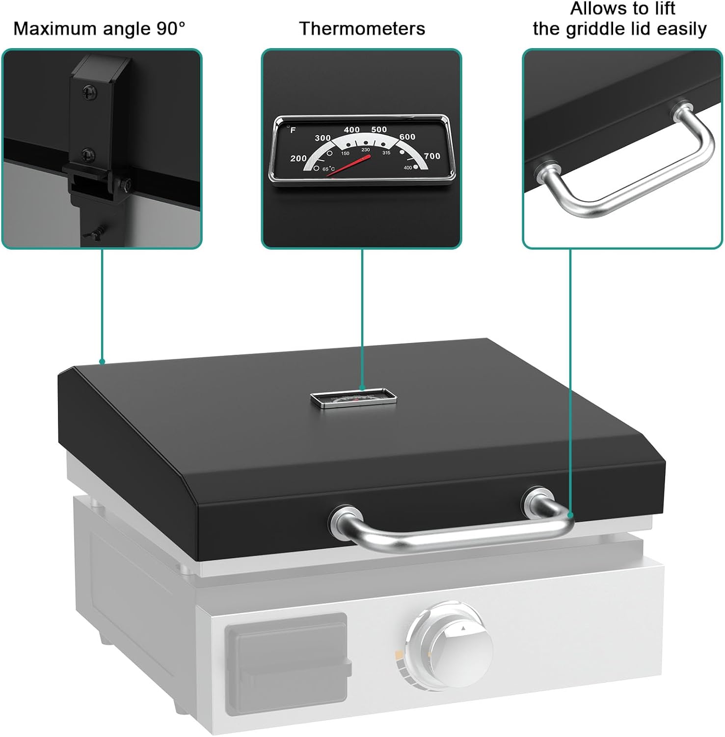 - 【Hard Cover with Thermometer】Our griddle lid come with a thermometer to monitor the temperature inside the griddle more accurately and in real time compared to other brands, making it easier to cook delicious food.