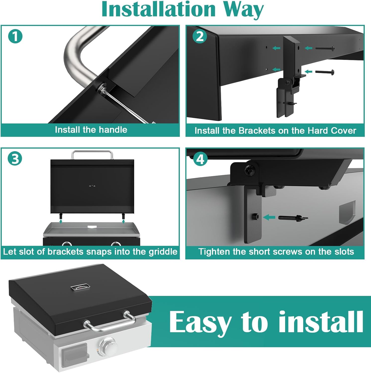 - 【Easy to Install】There is no complicated installation process, just install the handle and fix the hard cover on the griddle to use.