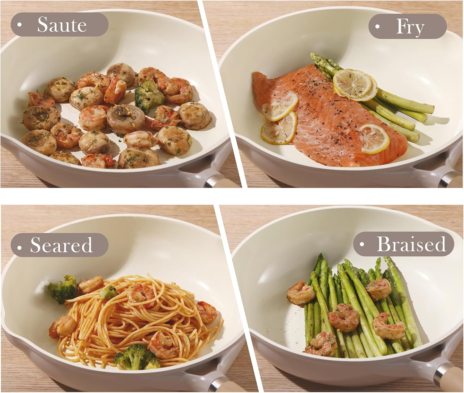 - Crafted with a non-toxic ceramic coating, our ceramic pan brings high level non stick performance and elevate your cooking experience.