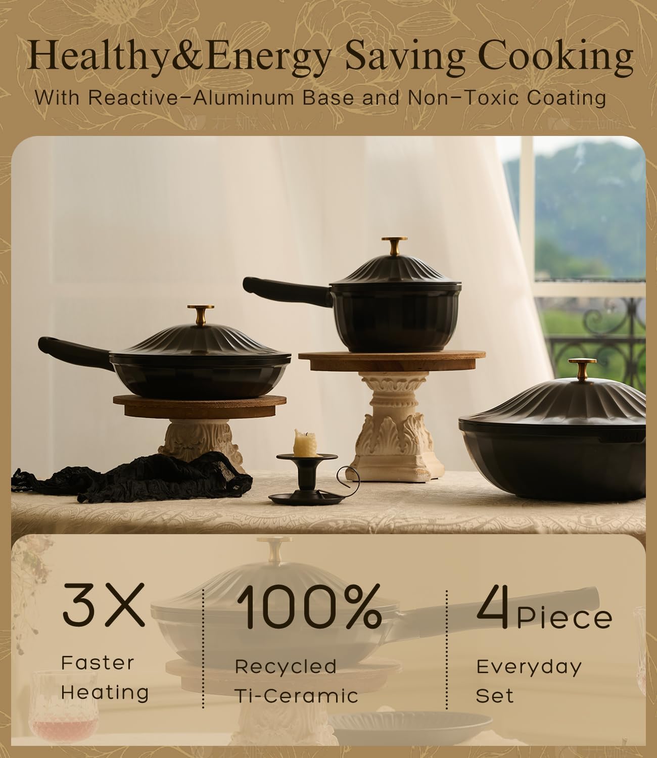 - Reactive-Aluminum Base for Rapid & Even Heat Heating: Featuring a high-purity aluminum alloy core with a conductivity of 237 W/m·K, this cookware heats up quickly and evenly—three times faster than cast iron. It reduces hot spots, saves gas and electricity, and delivers a more efficient cooking experience for fast-paced kitchens
