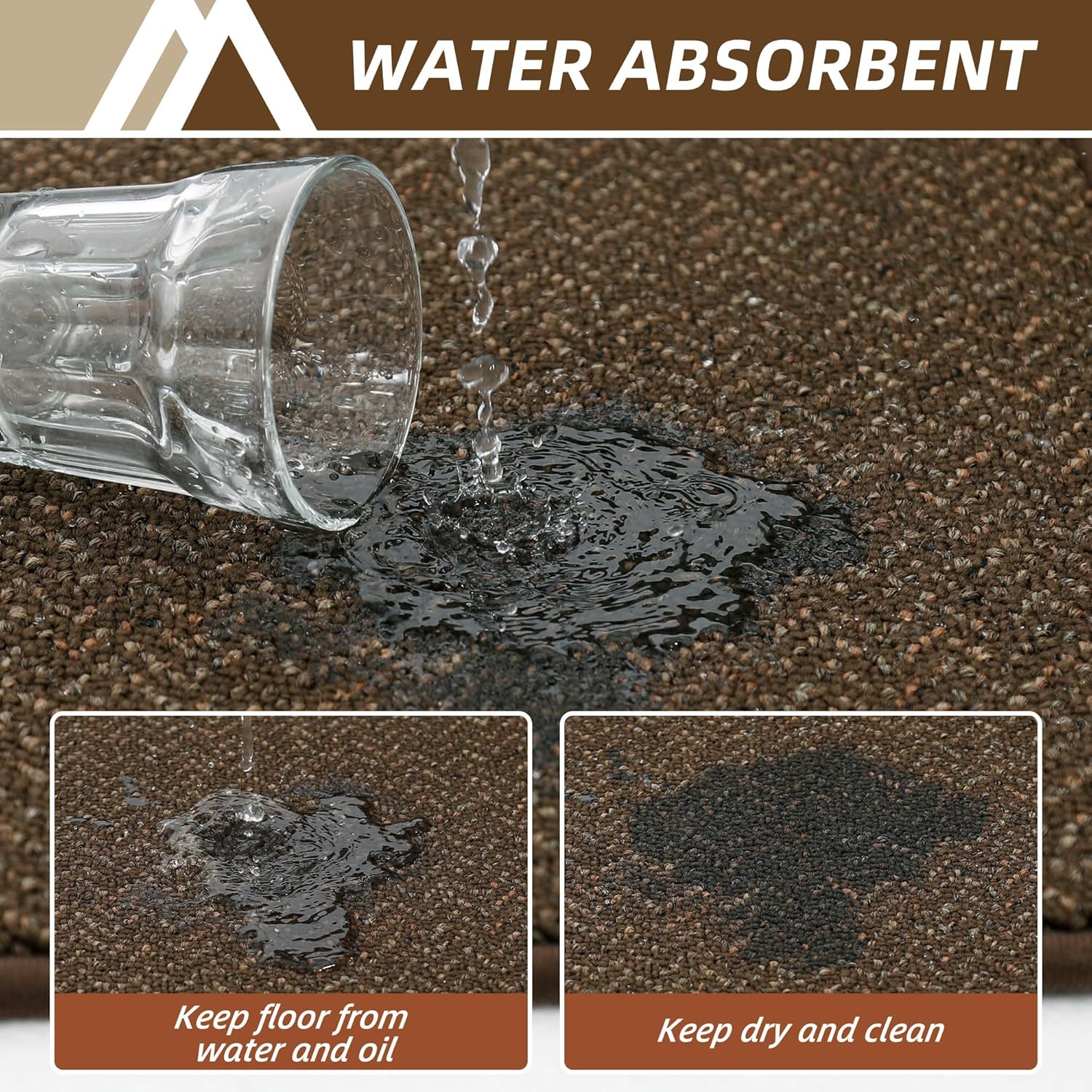 - Absorbent and Stain Resistance:Our kitchen rugs are made of premium Polypropylene fibers,featuring three-color dense yarns weaving, which can effectively absorb spilled oil and water.Our kitchen mats can keep your kitchen clean and dry.The kitchen rug sets can also protect the floor from your tableware breaking or damaging the floor