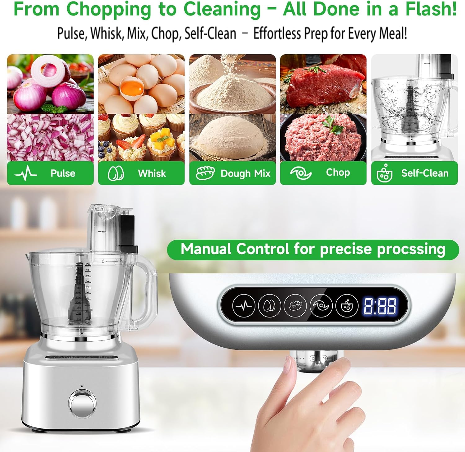 - ăProfessional-Grade 11-in-1 Performance for All Cooking NeedsăThe Homtone 16-cup food processor is a heavy-duty kitchen powerhouse that chops, slices, shreds, kneads, dices, and even whips egg whites or cream effortlessly. Whether you're prepping veggies for a salad, kneading dough for homemade pizza, or making creamy mashed potatoes, this large food processor handles it all. Its 650W motor powers through tough ingredients, making it ideal for big families, meal preppers, and entertainers who need high-volume food processing without the hassle.