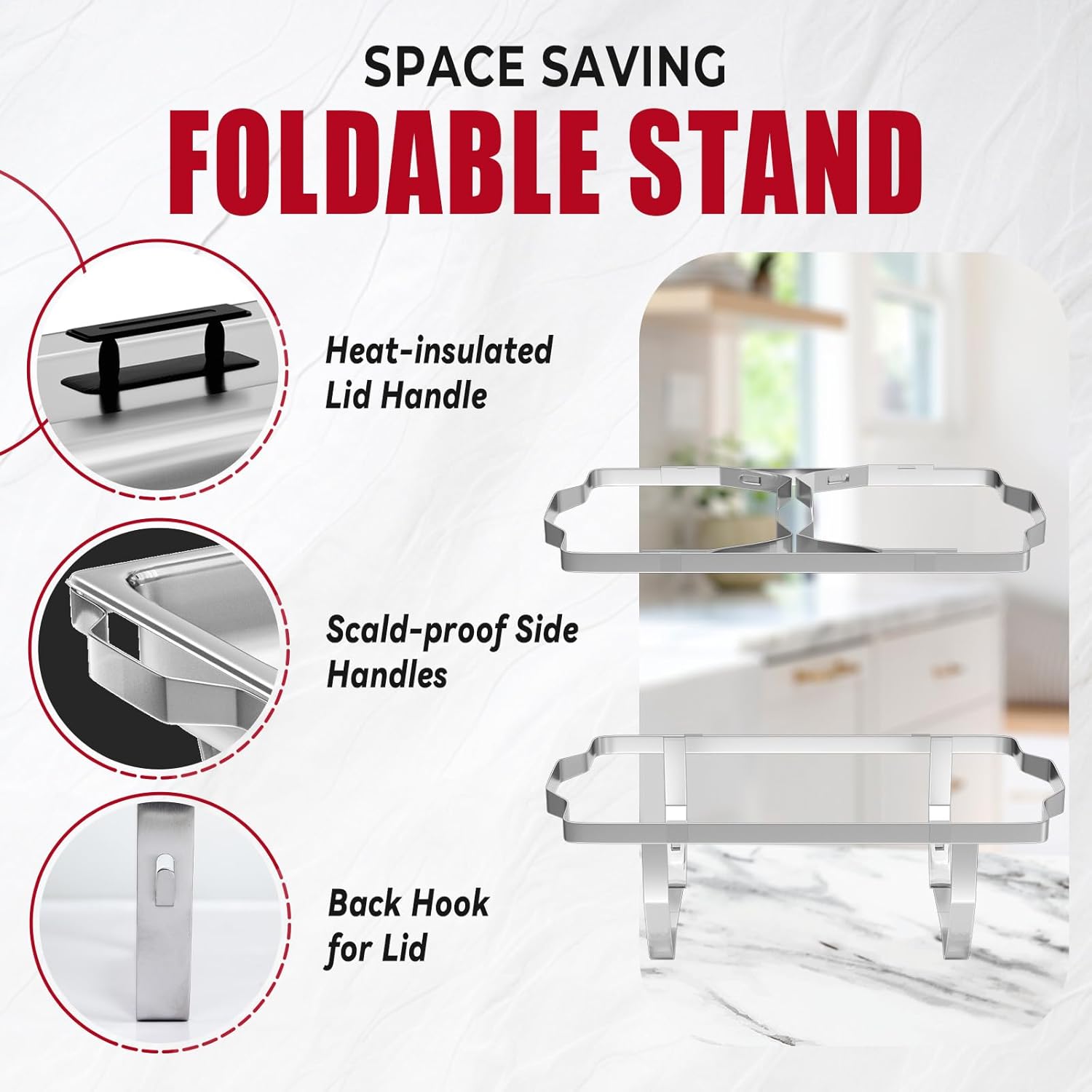 - Upgraded Stainless Steel: Made with thickened stainless steel for superior durability and corrosion resistance, each chafing dish is tested to ensure safety and longevity. Combining the strength of stainless steel and an elegant mirror-finished surface, it is designed ideally for a variety of chafing events