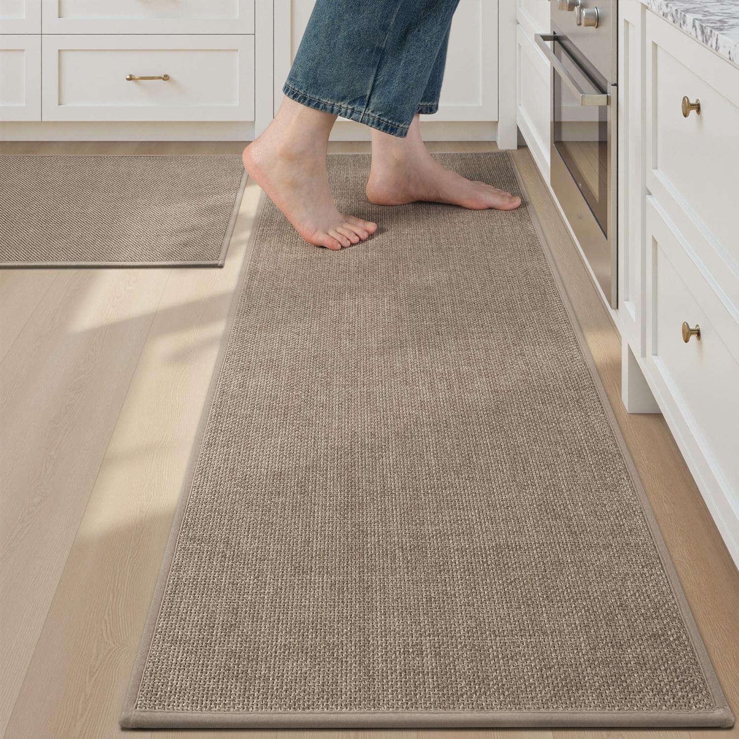 - Versatile Kitchen Rug Runner: You will receive 2 pieces non slip kitchen mat(17"x29"+17"x47"), which can be used freely in front of the sink, laundry room, bathroom, etc. Kitchen mats for floor washable are rustic and minimalist, and can also act as decorative elements that enhance the overall look of your home.