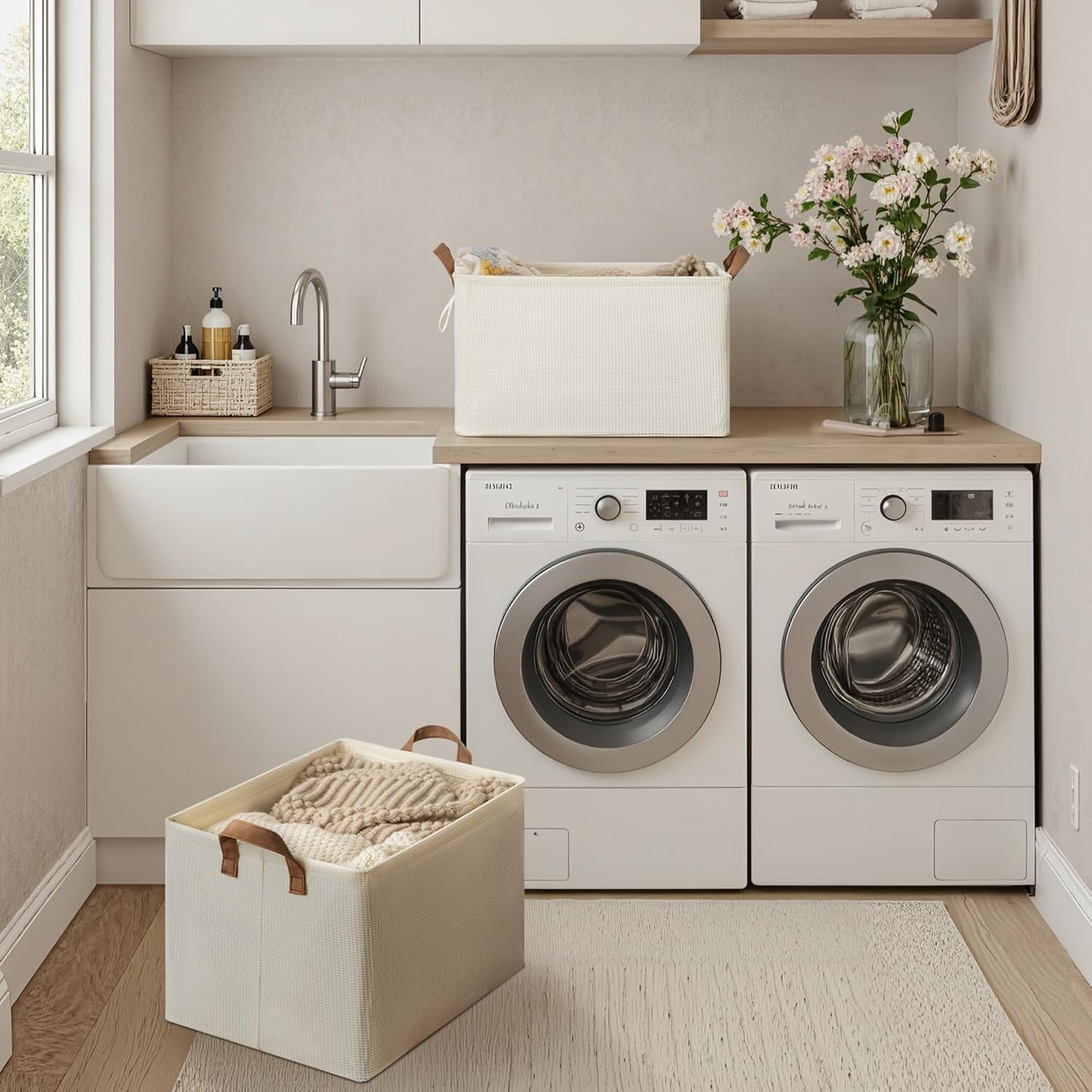 - Handle with Ease: With the 2 PU handles securely riveted to the sides of the storage bin, you can easily carry items without tearing the handles.