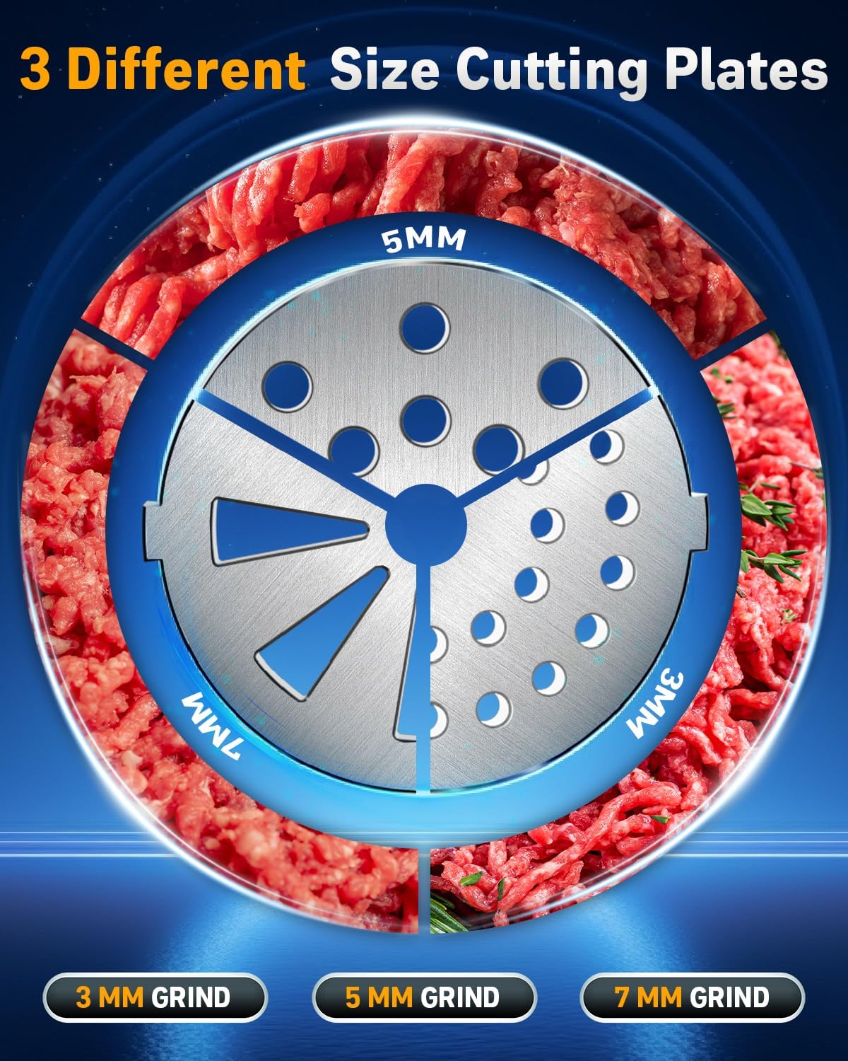 - 【FOOD GRADE PARTS】Crafted from premium food-grade materials, accessories of this electric meat grinder assure safety, corrosion resistance, easy cleaning, high temperature resistance, and durability. Using a meat grinder in conjunction with food-grade stainless steel components significantly extends its lifespan, up to 30%.