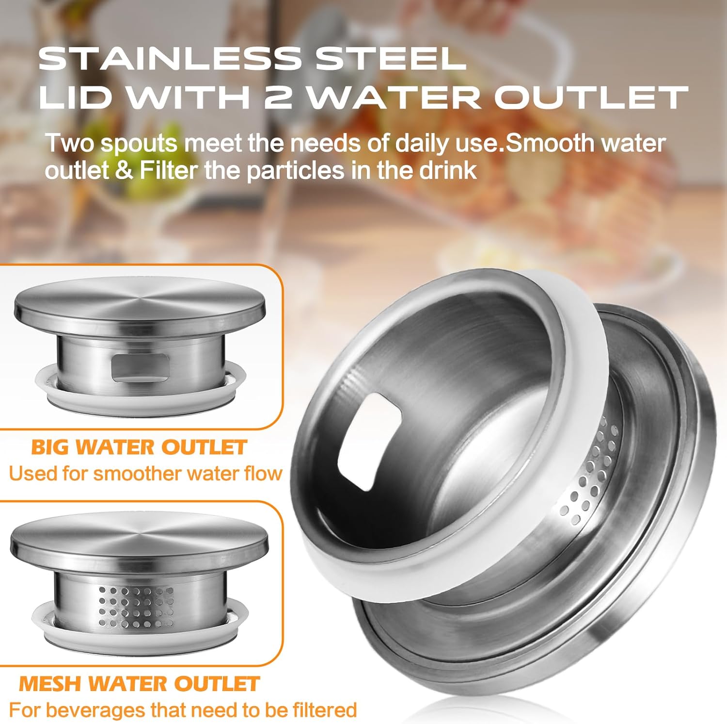 - MATERIALS & SIZE - It is made of high borosilicate glass with a thicker wall to ensure a longer life. This ices tea pitcher come with a 18/8 stainless steel lid with two different types of spouts. The size of the glass carafe: 4.72β(6.5β including handle)*3.66β*11.61β, the compact size won't cause any trouble for storage.
