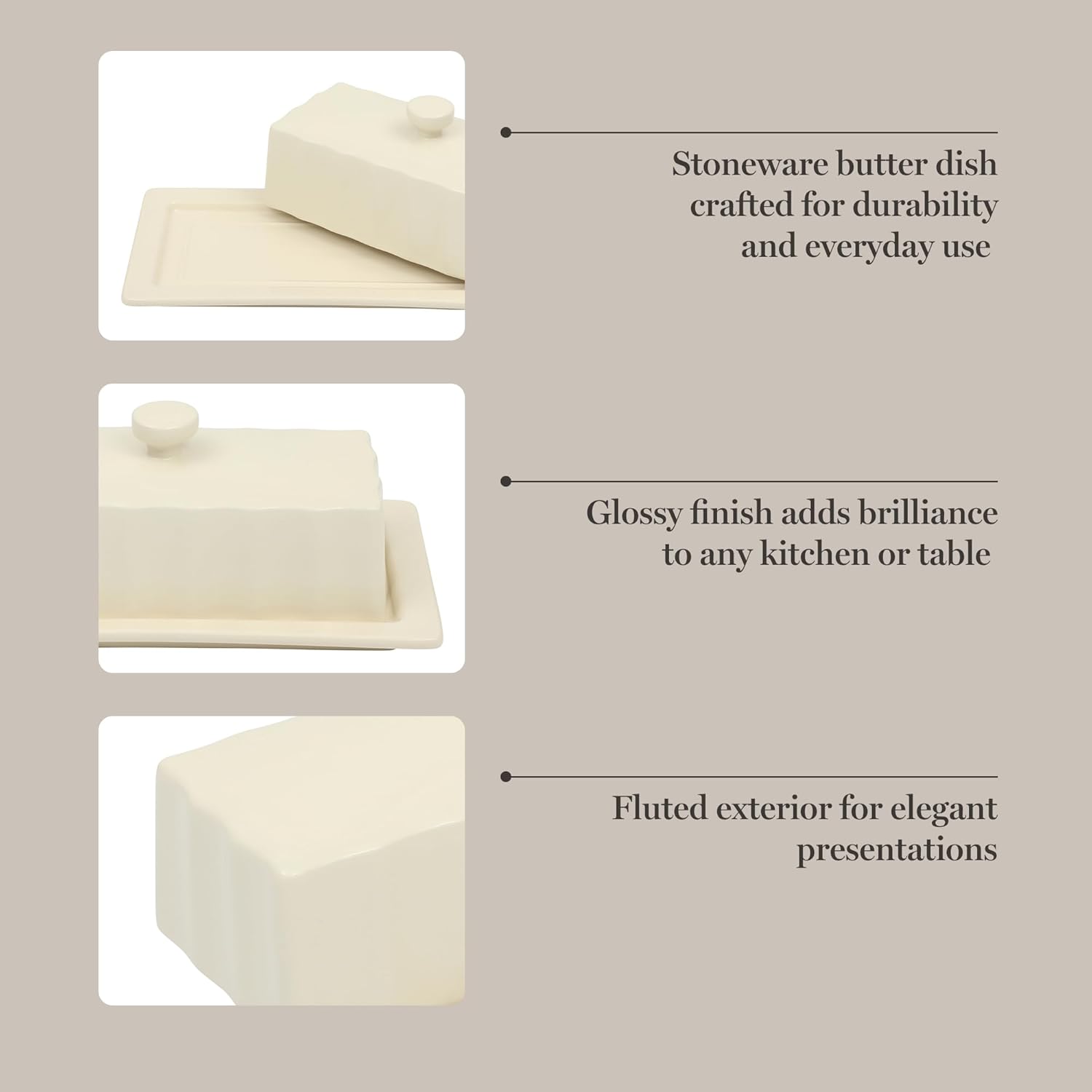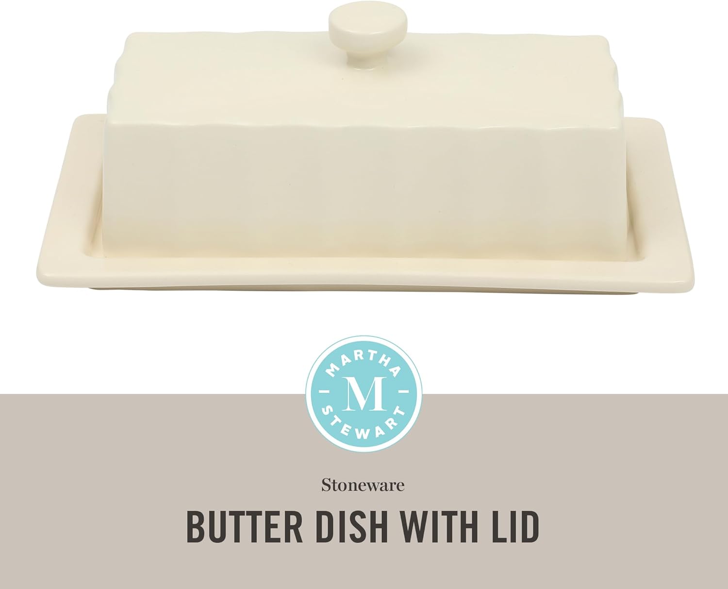 Martha Stewart Broadbrook Stoneware Butter Dish with Lid, Rectangular Covered Butter Keeper, 8.1 x 4.4 x 3 Inches, Classic Cream Glaze, Dishwasher Safe Ceramic Storage for Counter or Table
