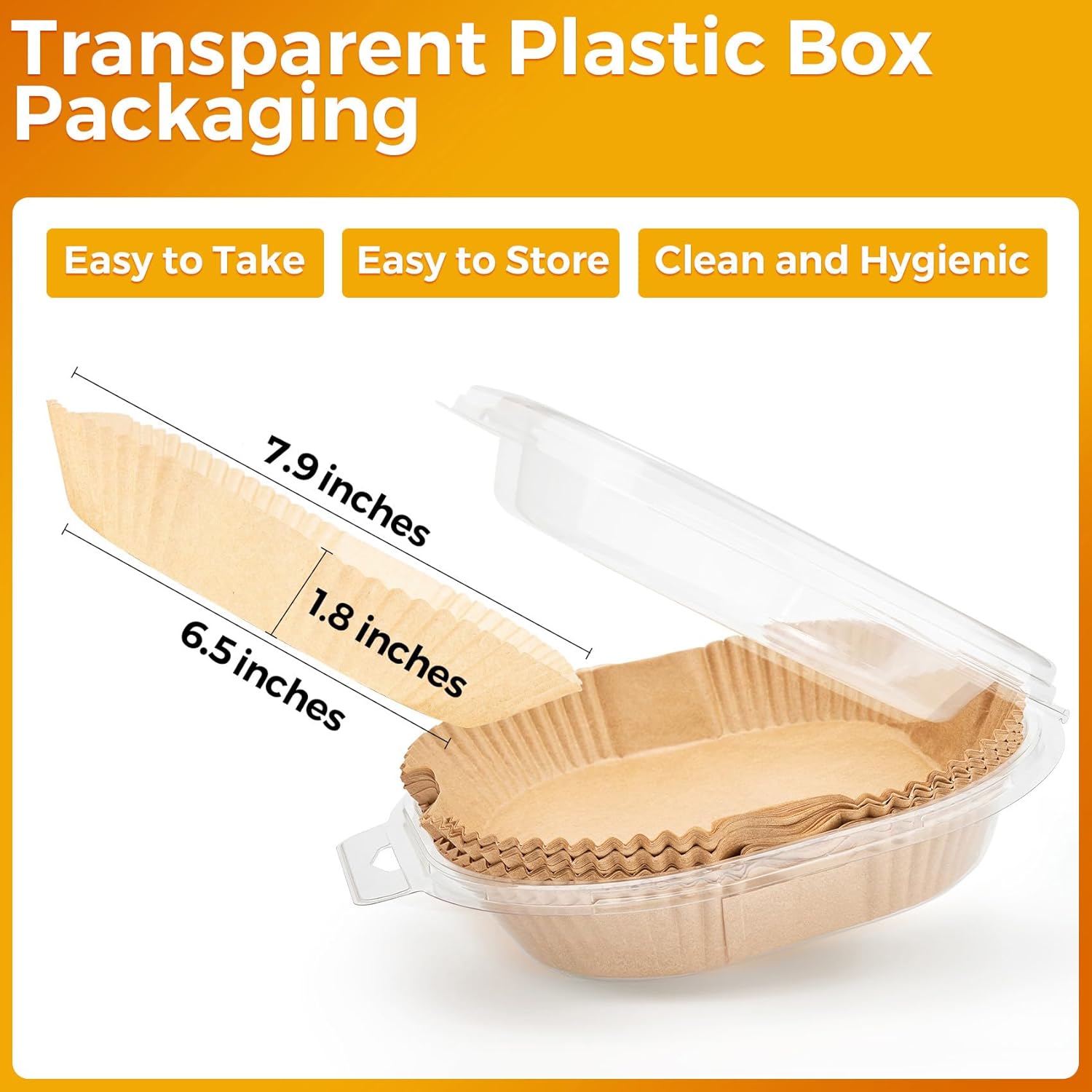 - Air Fryer Companion: 250pcs disposable liners are packed in a transparent plastic box, which is waterproof and dustproof, and can be hung. You can clearly see the remaining amount of paper liners. Easy and ready to use