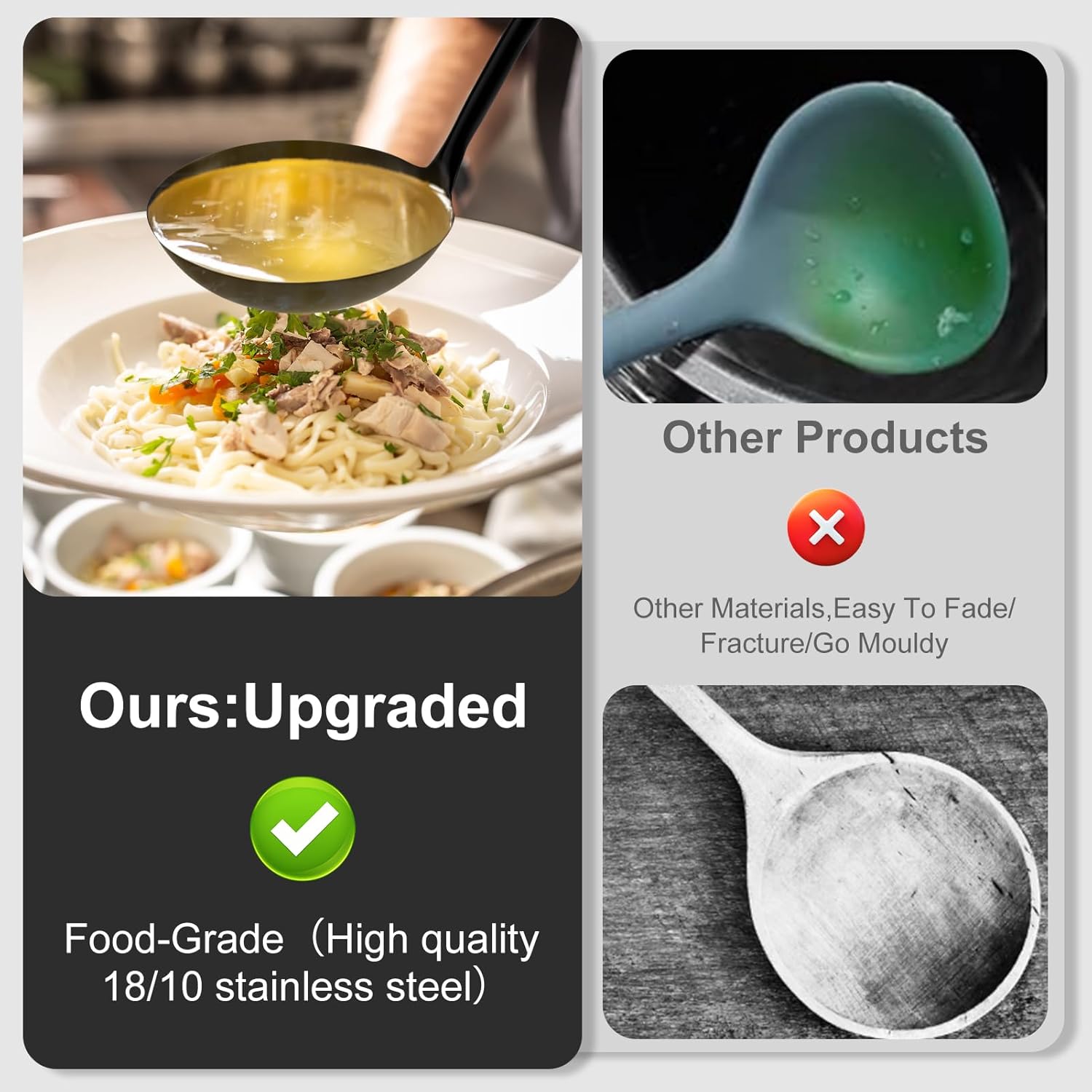 - 🔥 More Safe and Healthy: Crafted with food grade 18/10 stainless steel rustproof & corrosion-resistant material. The ladle ensuring years of reliable use in both home and professional kitchens. Its sleek, polished finish adds a touch of sophistication to any cooking or serving experience.