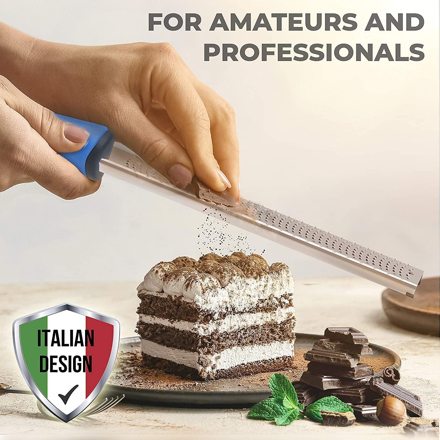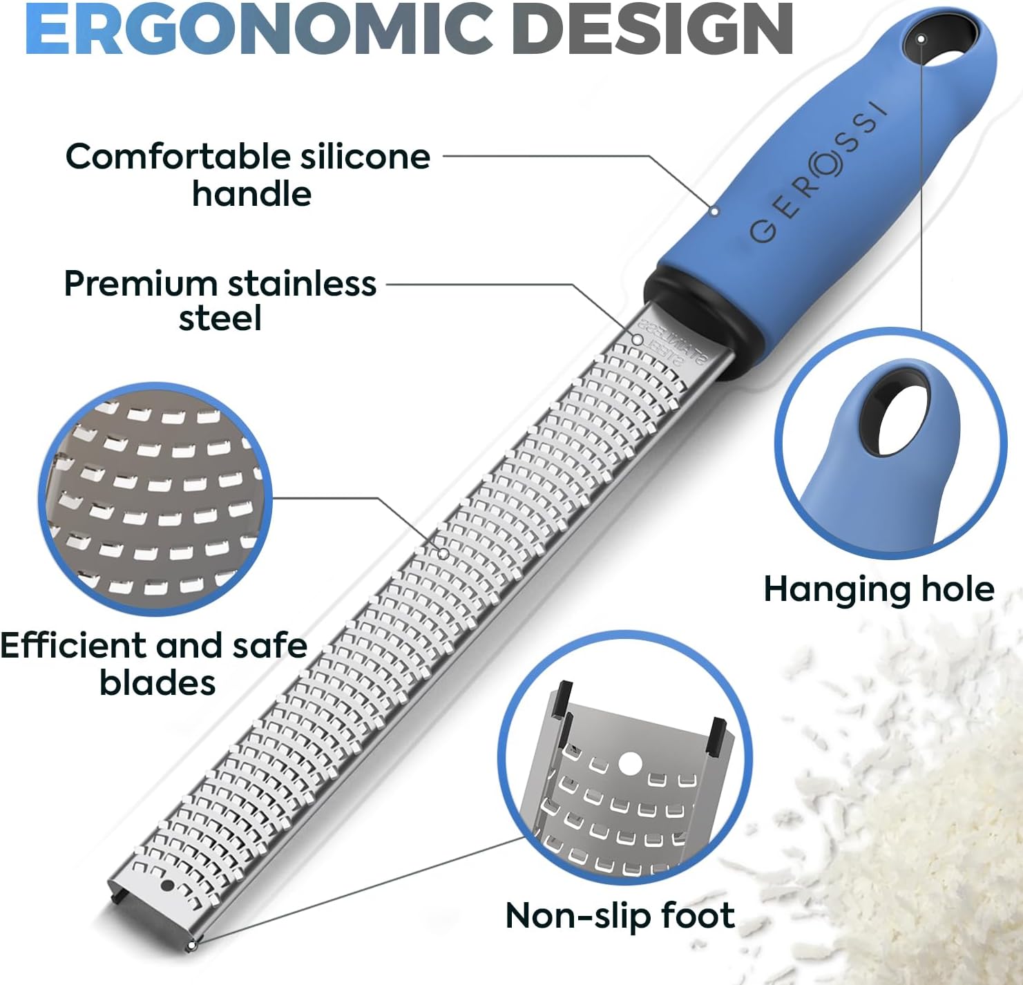 - ZESTER - Add extra flavor to your dish. This zester grater with handle comes with a razor-sharp blade that allows you to easily zest and grate lemons, cheese, ginger, fruits, spices, and vegetables.