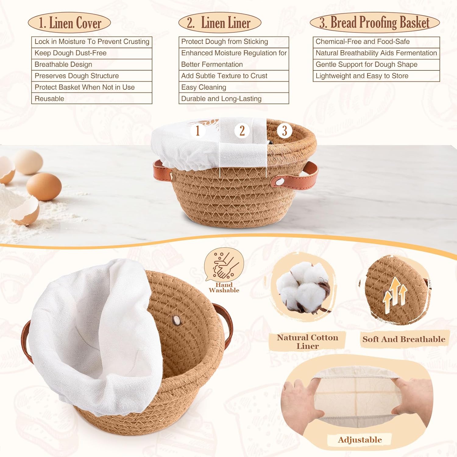 - 🧺THOUGHTFUL MINI PROOFING BASKETS DESIGN FOR PERFECT PROOFING - Food-Grade Cotton Material For Safe Proofing. The slightly textured surface of the woven material also leaves a beautiful pattern on the crust, adding an artisanal touch to your homemade bread that’s sure to impress. The woven structure of the cotton rope bread bowl proofing bowl provides just the right amount of tension and air circulation needed for perfect dough proofing. Transform sourdough baking from challenging to effortlessly enjoyable with VEDALIO's premium, expertly designed bread making tools sourdough bread baking supplies.