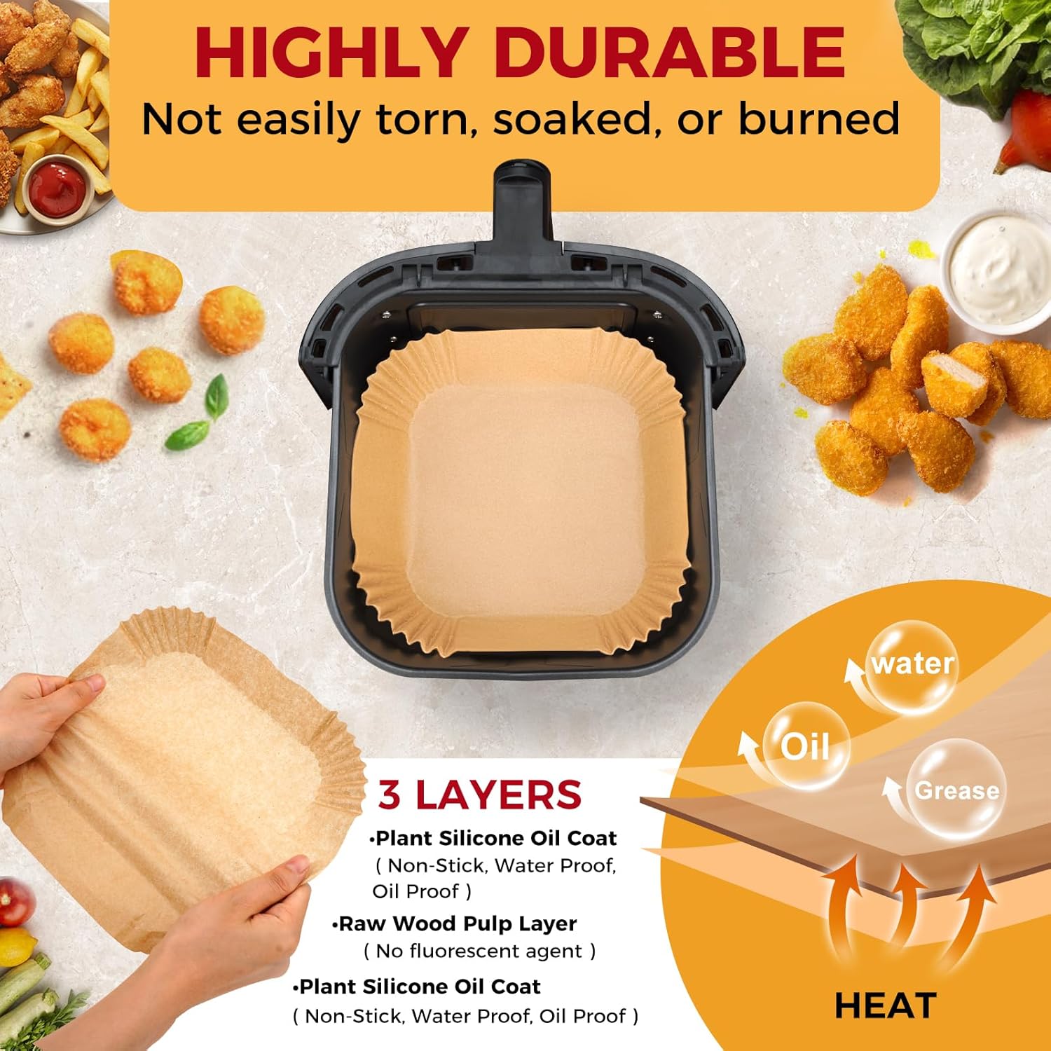 - Easy Cleanup: The air fryer paper liners are like a square bowl, which can effectively keep your air fryer away from food residues and protect the side of fryers. Keep the bottom of air fryer basket clean and make cleanup a breeze.