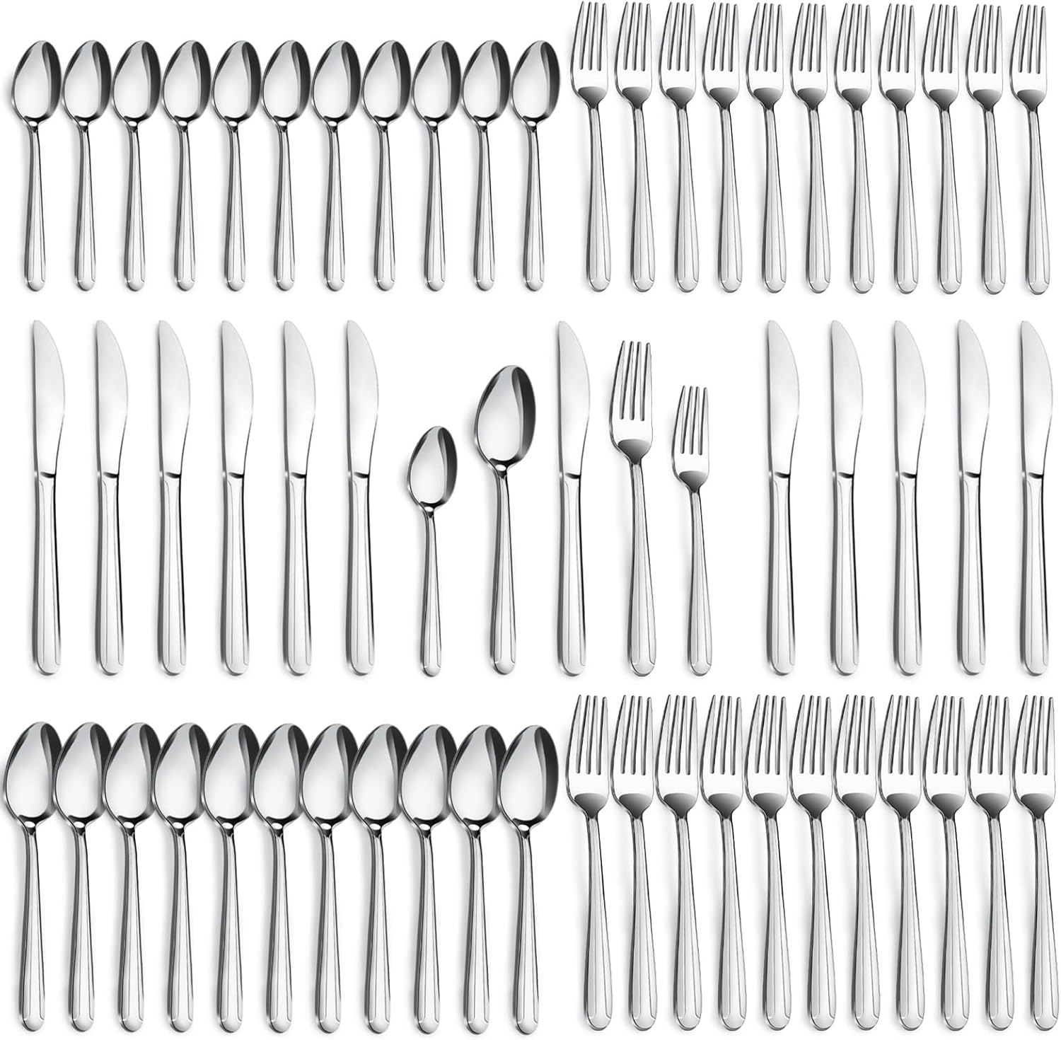 - ă60-Pieces Flatware Set For 12ăOur 60 pieces silverware set contains 12 dinner spoons, 12 teaspoons, 12 dinner forks, 12 salad forks, 12 dinner knives, which is suitable for family use and reserve for important event occasions