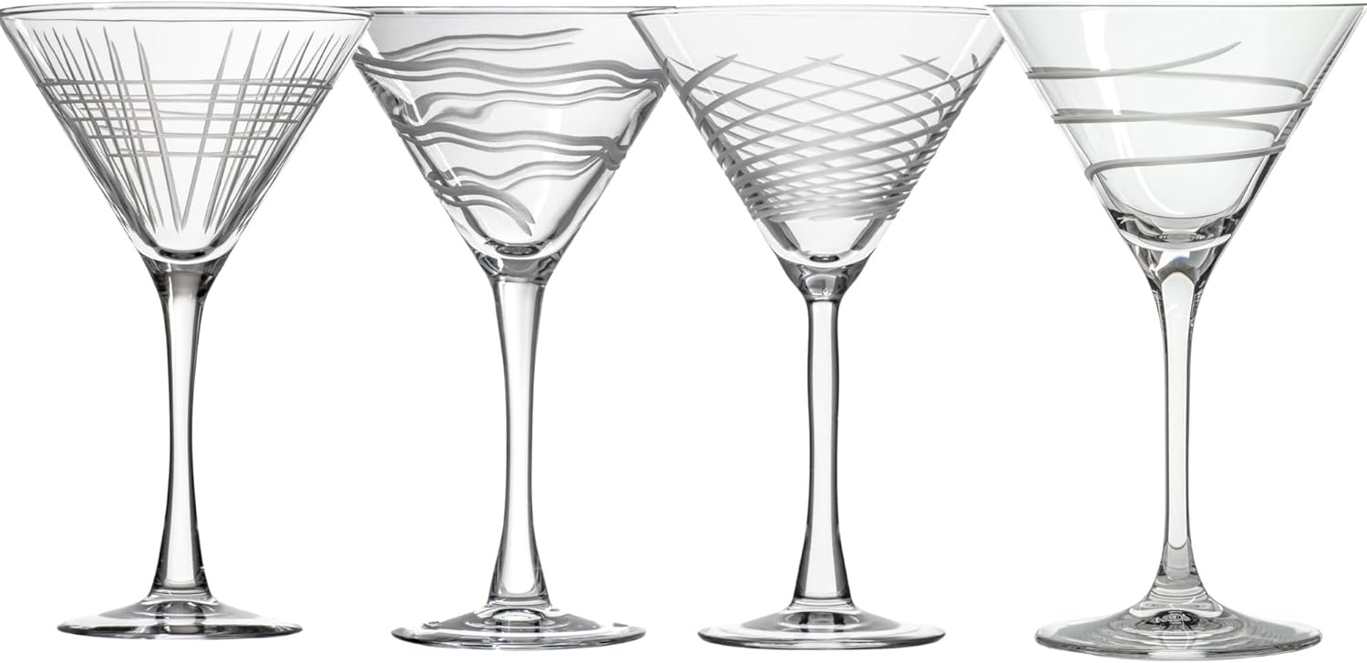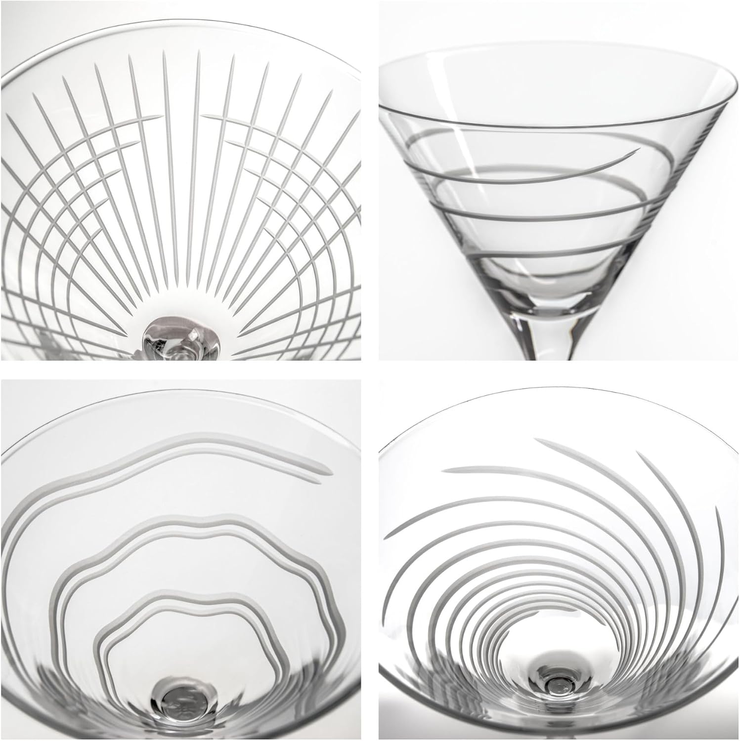 Rolf Glass Symmetry Martini Cocktail Glass | 10oz Martini Glasses | Lead-Free and Diamond-Wheel Engraved | Mixed Contemporary Designs | Proudly Made in the USA | Set of 4