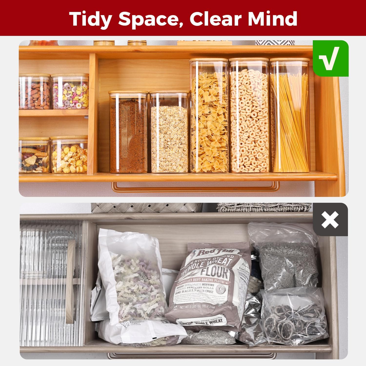 - 【Glass Kitchen Canisters】Sleek, modern aesthetics meet everyday practicality — these glass canisters not only help declutter your kitchen, but also elevate your countertop with a clean, organized look.