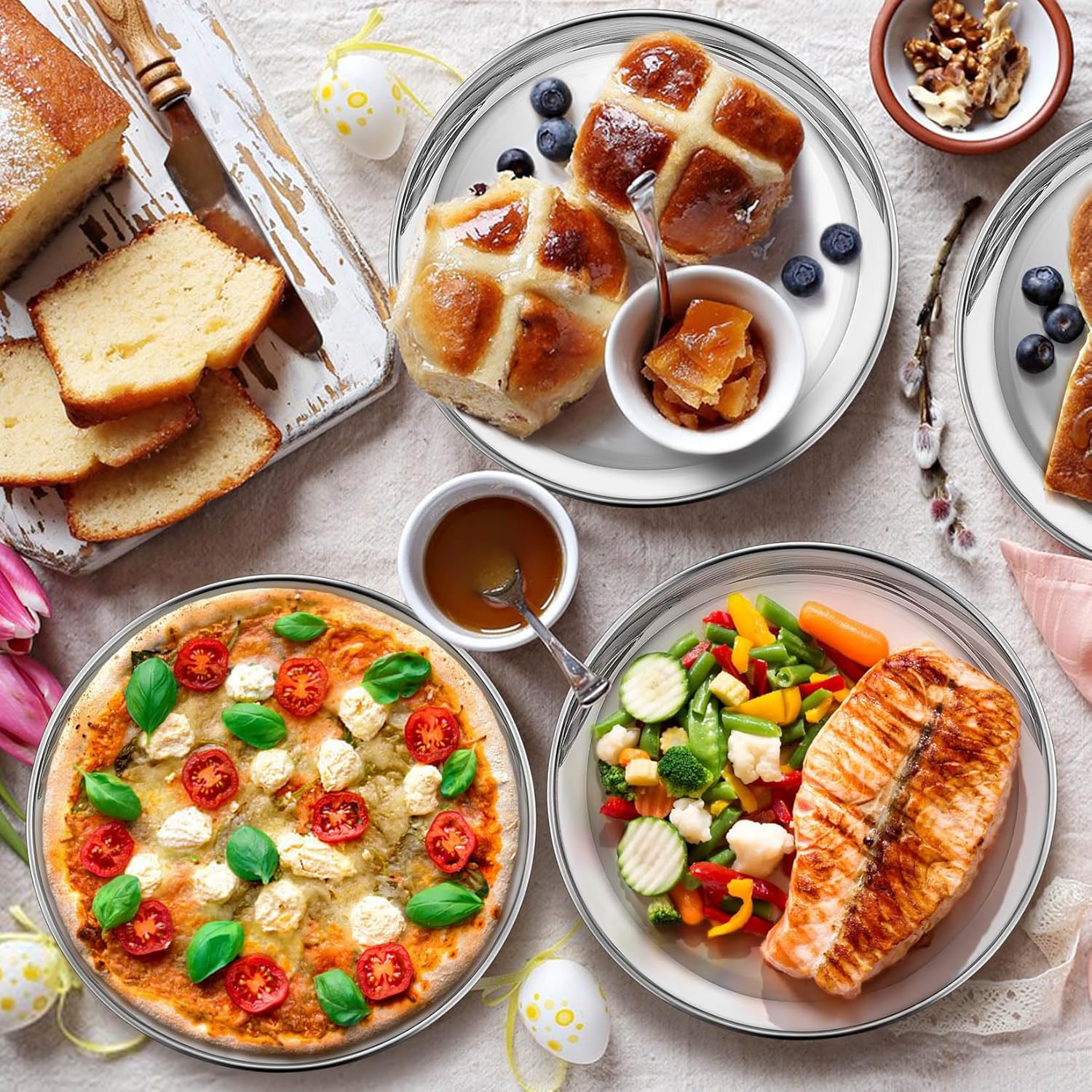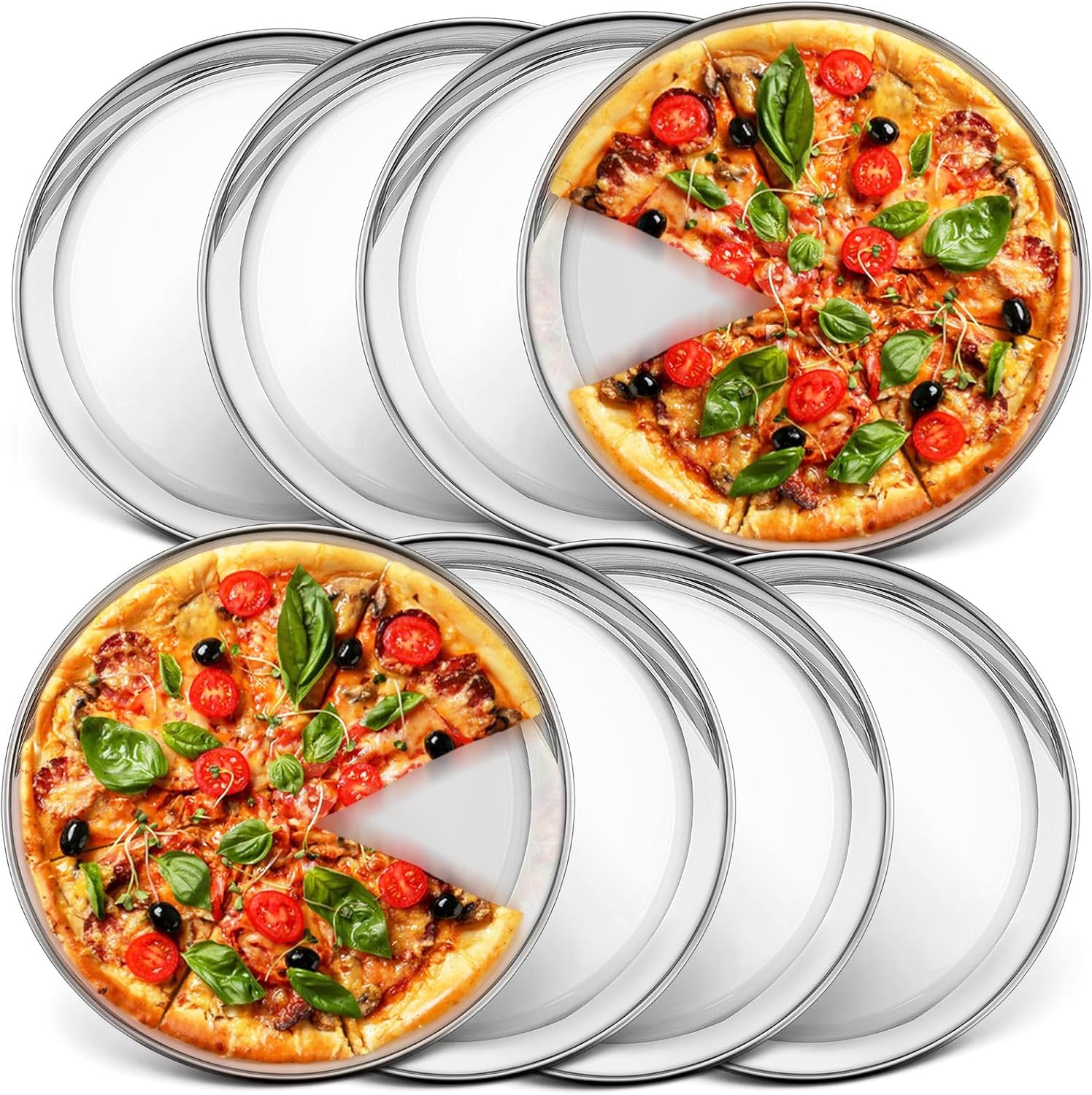 P&P CHEF 10 Inch Pizza Pan, Stainless Steel Round Pizza Tray Baking Pans, Pizzas Plate Serving Tray for Cookie Meat, Oven & Dishwasher Safe & Easy Cleaning, (Mirror Finish) - 8 Pieces