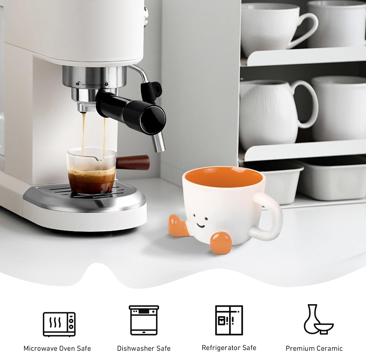 - INTERESTING STYLING: Cute funny Coffee Mug with Smiling Face and Lil Feet. Creative, cute design stimulates your imagination and inspires you to start the day well