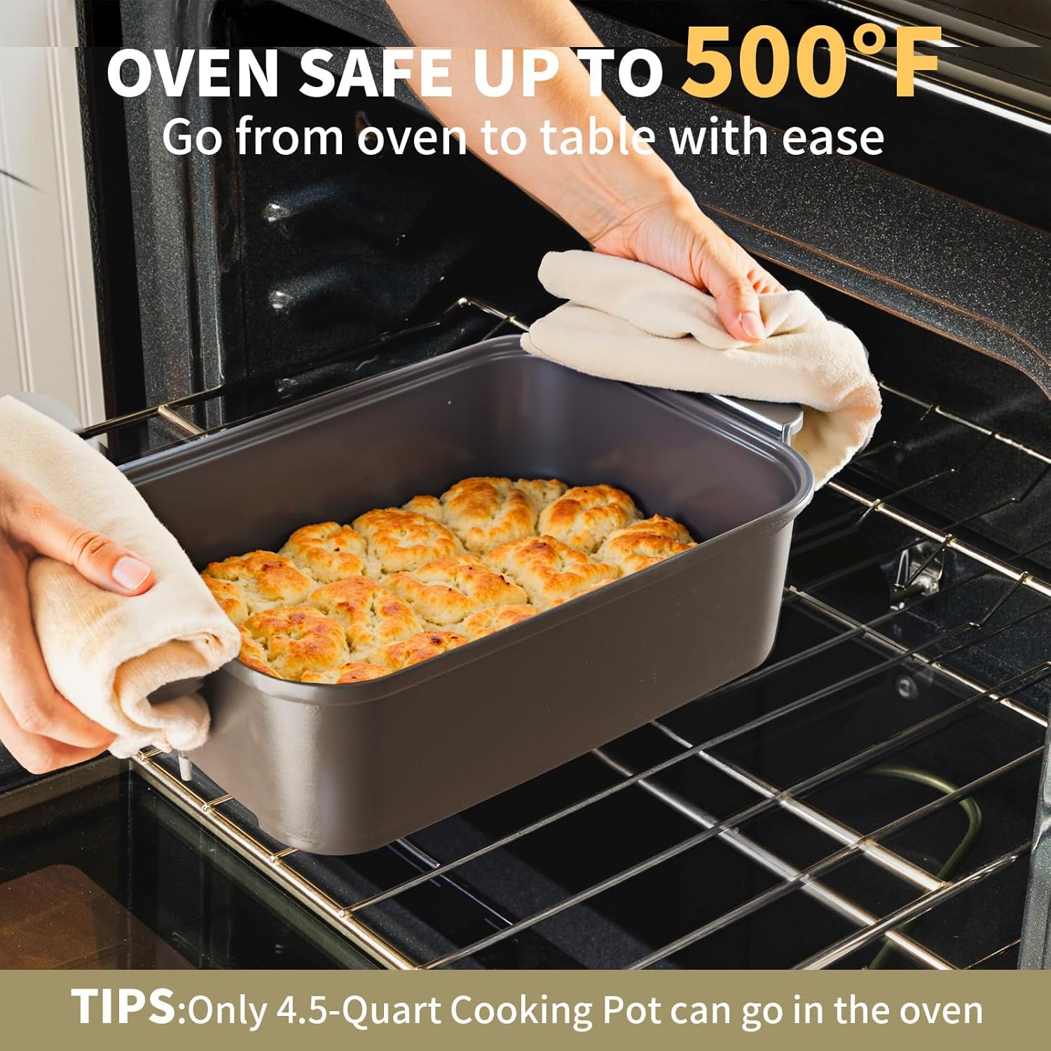 - Oven Safe up to 500Β°F: The 4.5-quart cooking pan is oven safe up to 500Β°F for a crispy texture (other pans, such as griddle grill pan, will not fit in the oven). Easily transfer the pan from the oven to the table (requires an insulating mat purchased separately to avoid heat damage)