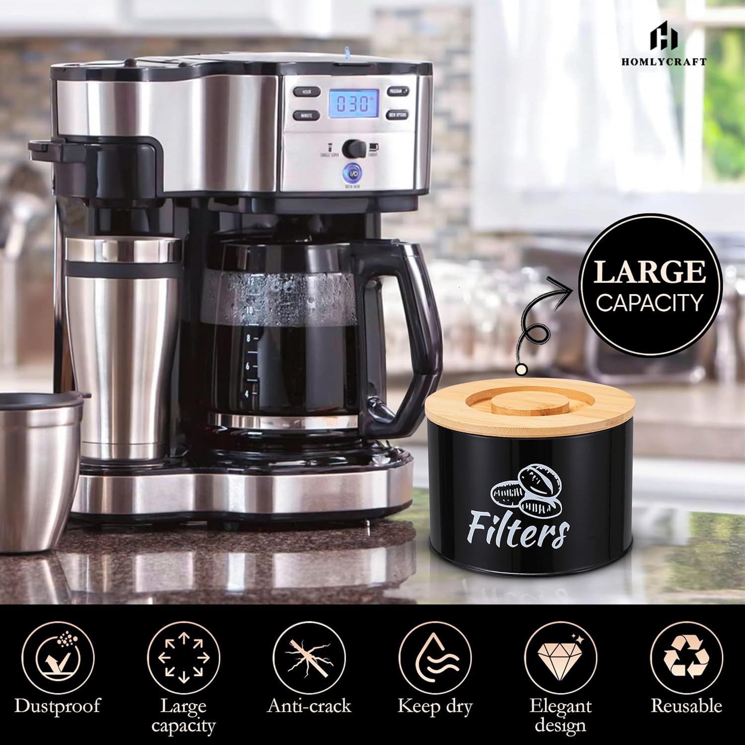 - ✅ Moisture-Proof Bamboo Lid with Handle The bamboo lid seals tightly to keep your filters clean, dry, and protected from dust or splashes. Built-in handle makes opening easy and convenient during your busy morning routine.