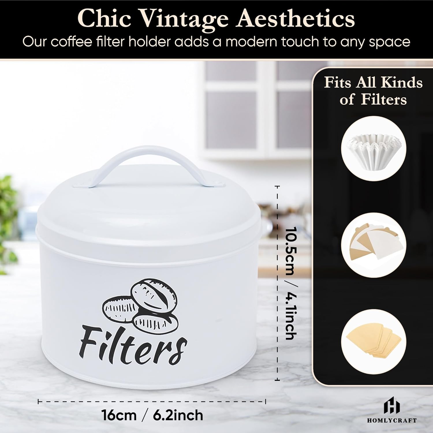 - ✅ Sleek Metal Lid for Dust Protection The silver-tone lid is designed to seal out moisture and dust, keeping your paper filters dry and fresh. Its durable handle allows easy access at any time of day.