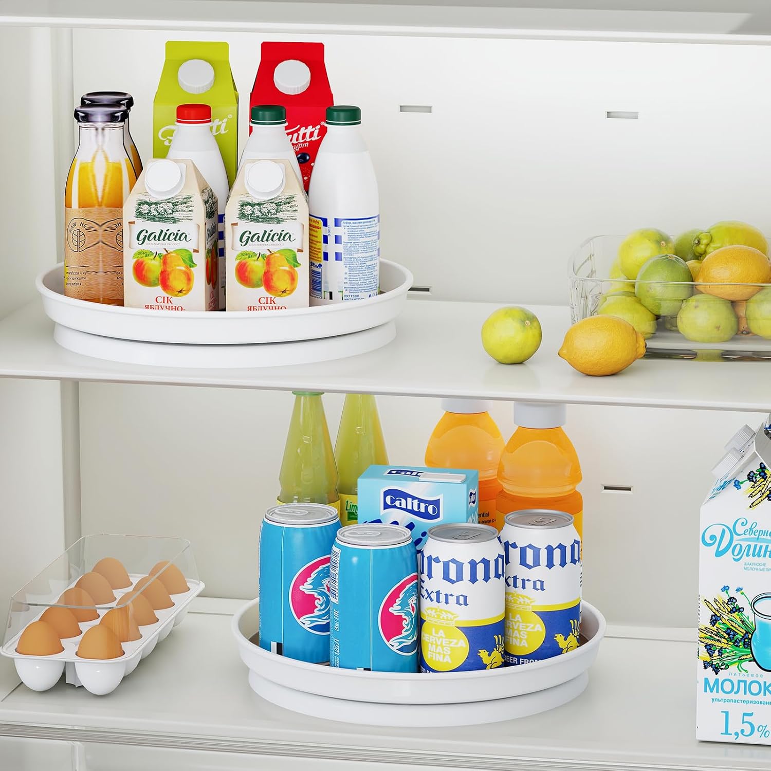 - Optimal Size: This lazy susan set includes two 10-inch lazy susan turntable—perfect for spice jars, condiments, snacks, or toiletries. Compact yet spacious, each tray fits neatly into cabinets, countertops, pantries, refrigerators, and bathrooms for effortless organization