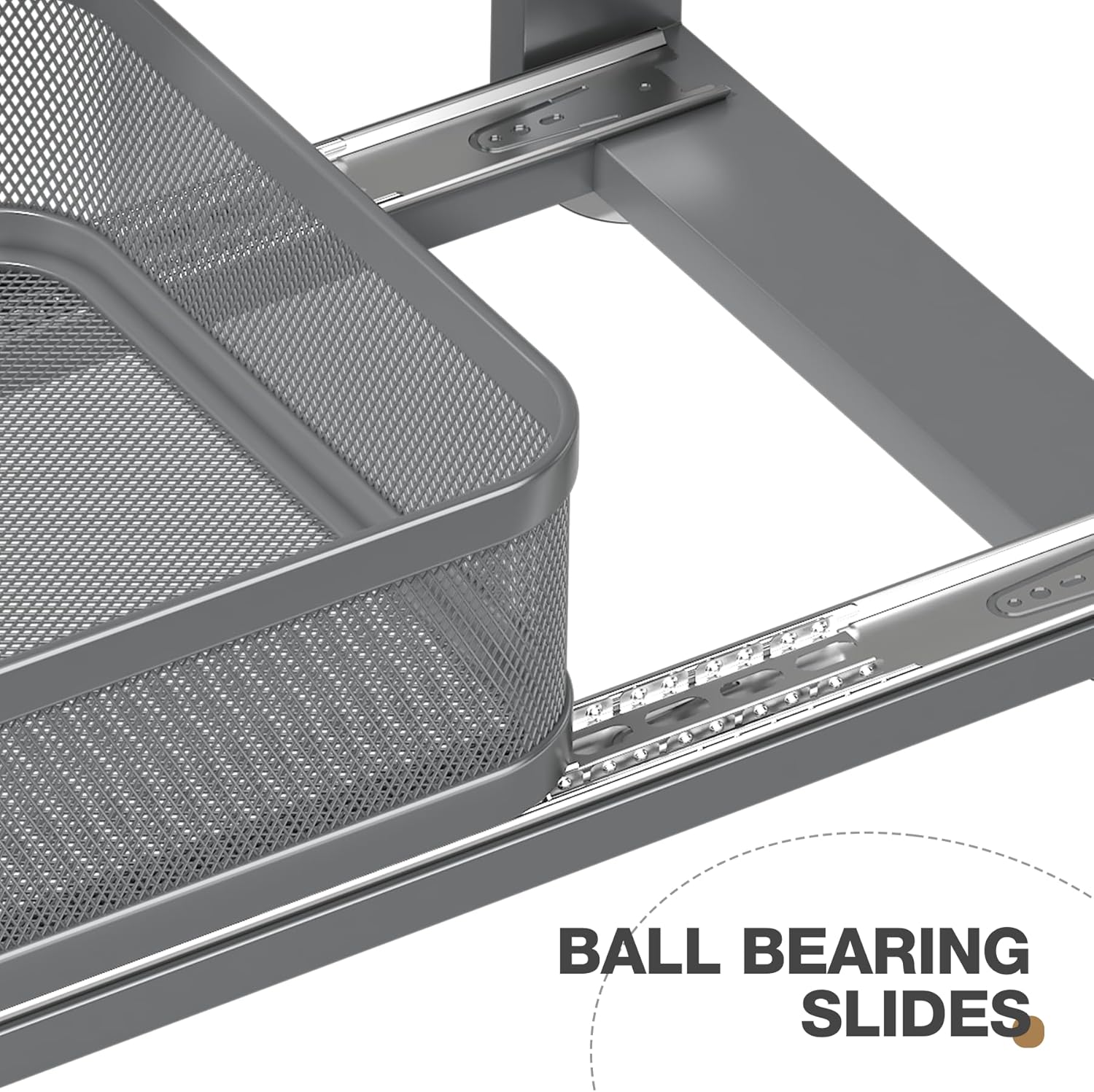 - 【Ultra-Smooth Glide】Pull out cabinet organizer features next-generation ball-bearing slides.Premium metal rails with ball bearings ensure a silky-smooth, noise-free glide, effortlessly handling heavy loads for the ultimate pull-out experience.