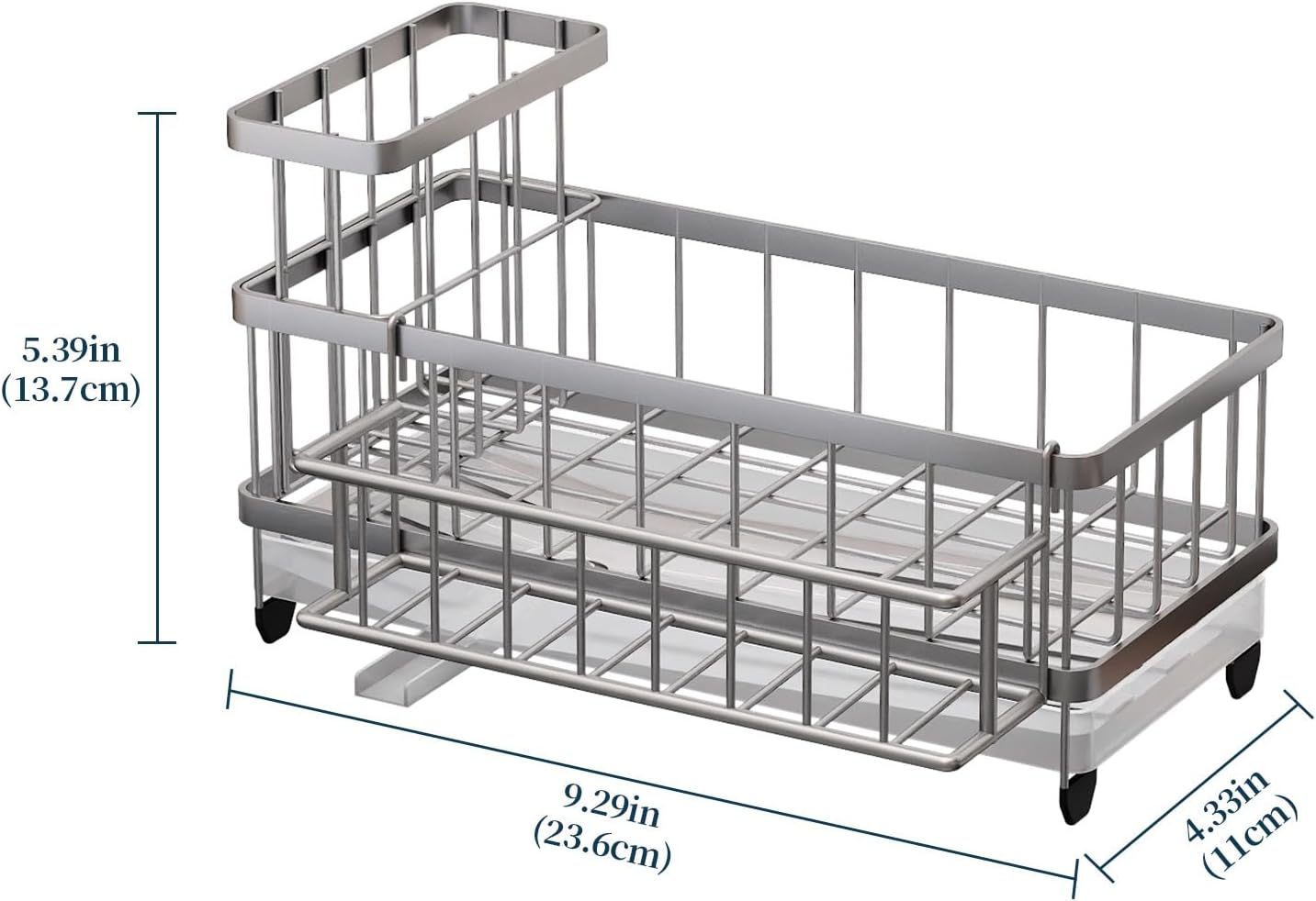 - [Sturdy Stainless Steel Build]: Crafted from high-quality stainless steel, this kitchen sink caddy sponge holder offers long-lasting durability, rust resistance, and a modern sleek look. The open base keeps air flowing to help faster dry your tools