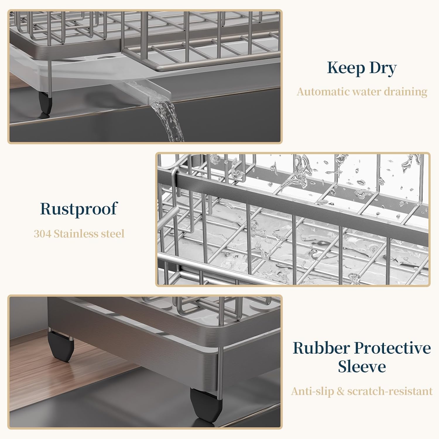 - [360Β° Rotatable Spout]: The kitchen sink caddy is equipped with a built-in 360Β° rotatable spout that channels excess water of sponges directly into the sink, ensuring your sink holder stay dry and hygienic. No more soggy sponges or water buildup on your counter