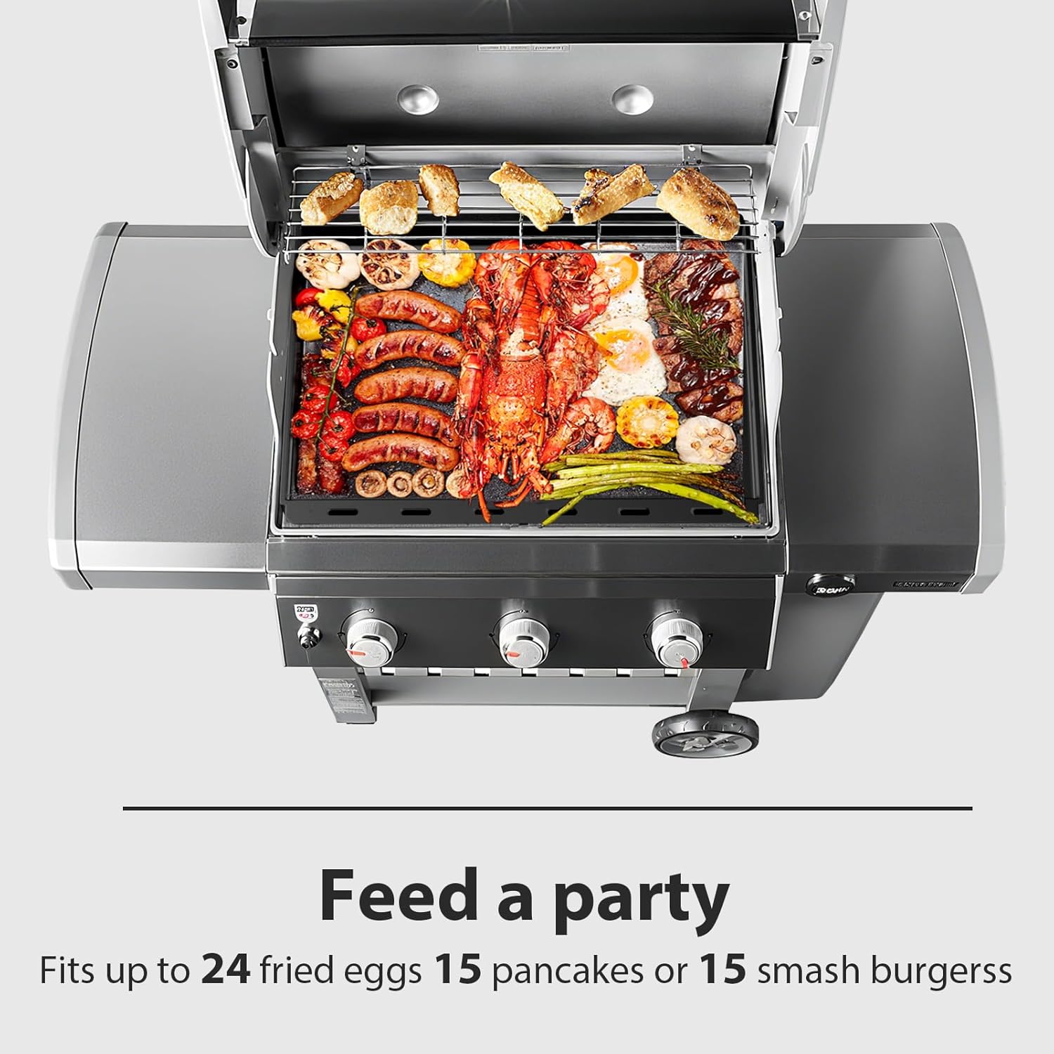 - Full-Size Cooking Area – At 25.2" x 19.5", this insert turns your Genesis 300 into a full flat-top cooking station. It’s an ideal weber genesis griddle insert for making pancakes, bacon, burgers, or veggies all at once—just what you need for family breakfasts or weekend BBQs.