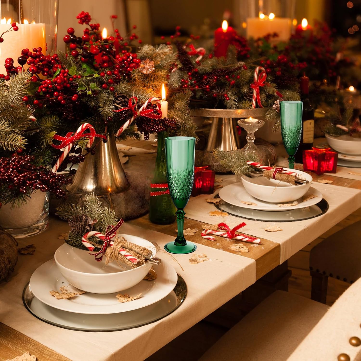 - Charming Set: Champagne flutes set include 12 retro-style dark green champagne plastic wine glasses, providing ample quantity to meet your daily use and replacement needs. A suitable champagne cup is the icing on the cake. Plastic wine glasses not only carry the wine, but also carries the laughter and blessings