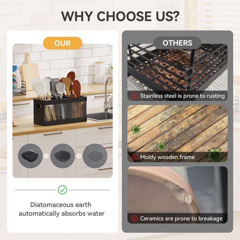 - 【Versatile Storage Solution 】: Perfect for organizing various kitchen utensils including spoons, spatulas, and cooking tools. The spacious compartments accommodate large utensils while keeping them easily accessible