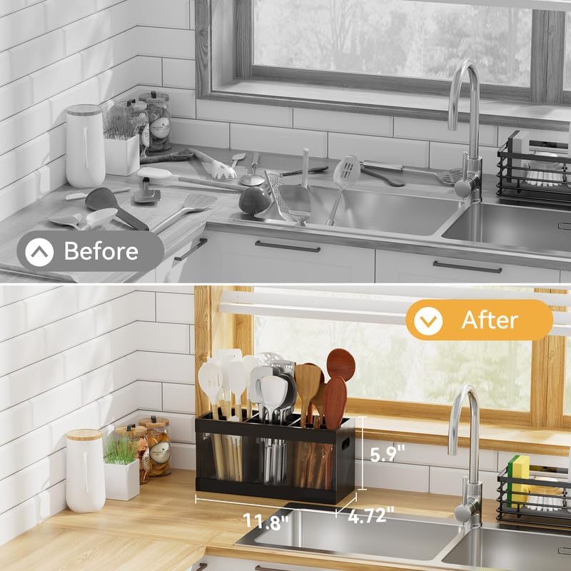 - 【Stable & Secure Design】: With dimensions of 11.8" x 4.7" x 5.9" , this utensil holder provides exceptional stability on your countertop. The balanced weight distribution prevents tipping, ensuring your utensils stay organized and secure