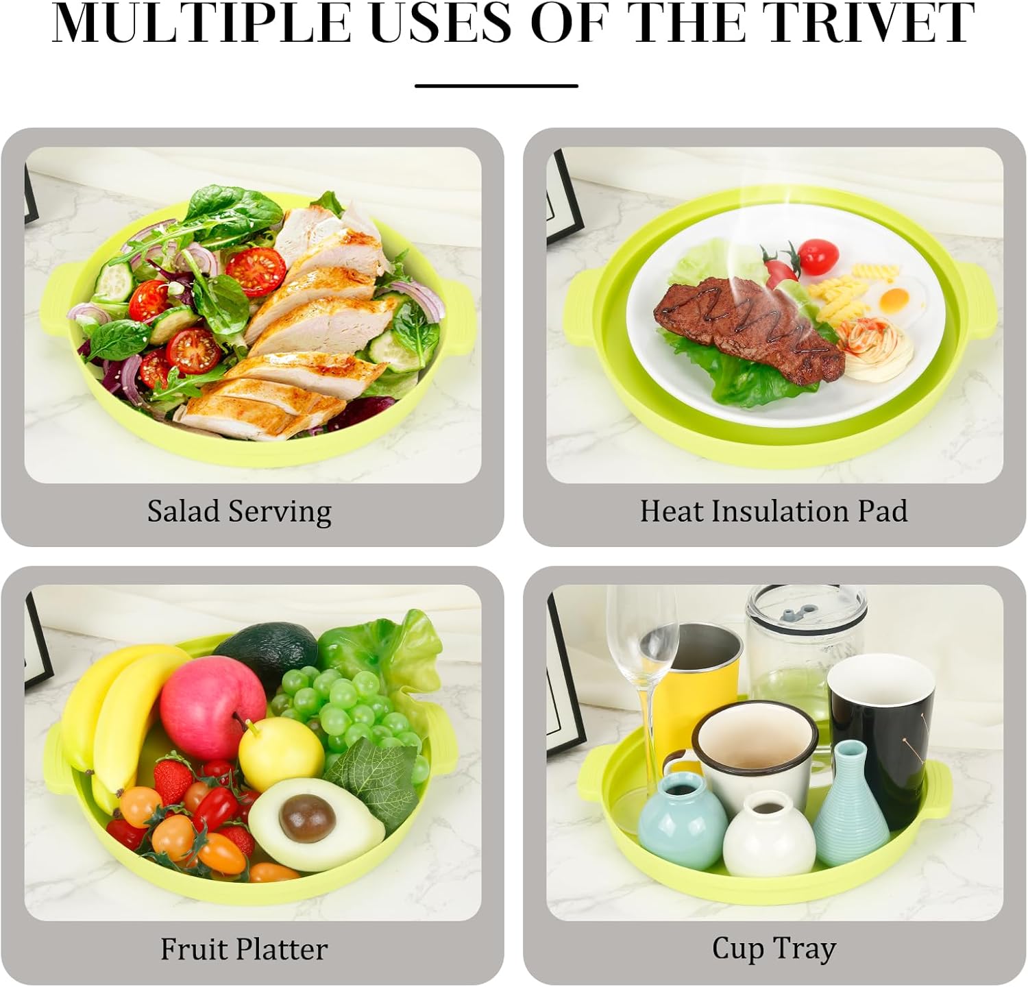 - 【FOOD-GRADE MATERIAL】:The splatter cover & trivet for hot dishes are made of safe and durable PP plastic,free of BPA.They can be cleaned in the dishwasher,freeing your hands from tedious work